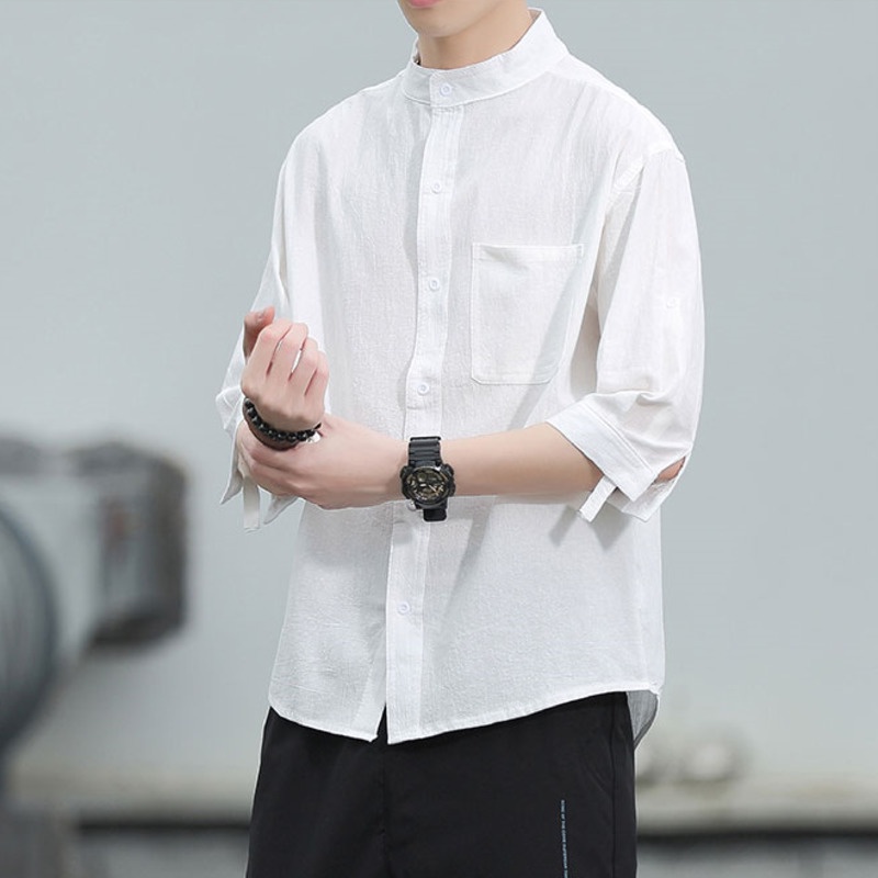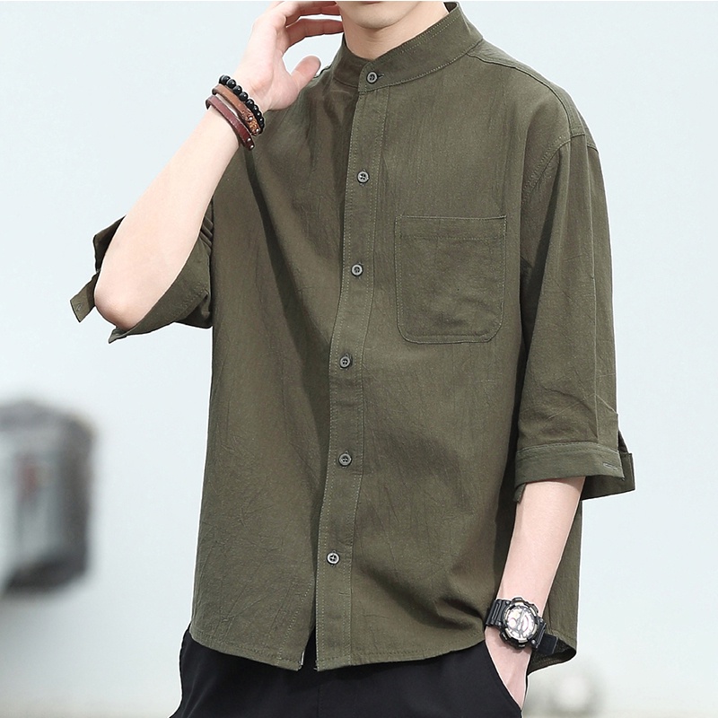 เสื้อเชิ้ตแขนสั้นลําลอง ผ้าฝ้าย และผ้าลินิน ทรงหลวม ขนาดใหญ่ สําหรับผู้ชาย ไซซ์ M - 4XL
