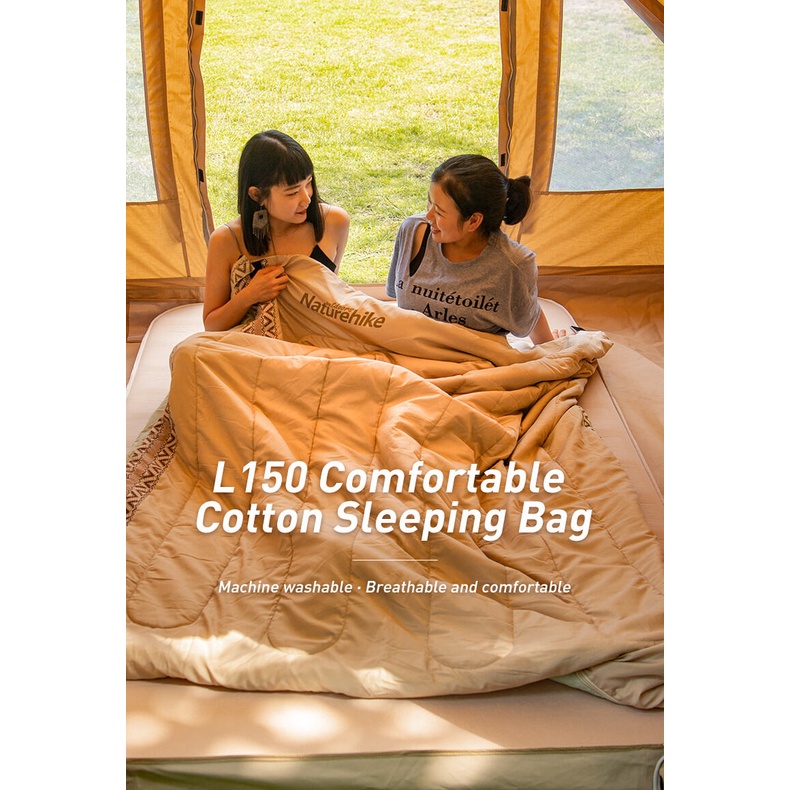 Naturehike L150 ถุงนอนผ้าคอตตอนน้ำหนักเบามาก850ก ซองเดี่ยวผ้าฝ้ายถุงนอนตั้งแคมป์กลางแจ้งให้ถุงขี้เกียจระบายอากาศที่อบอุ่