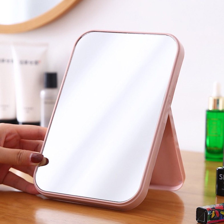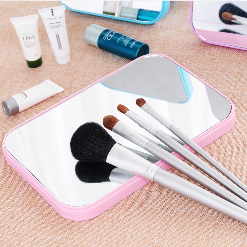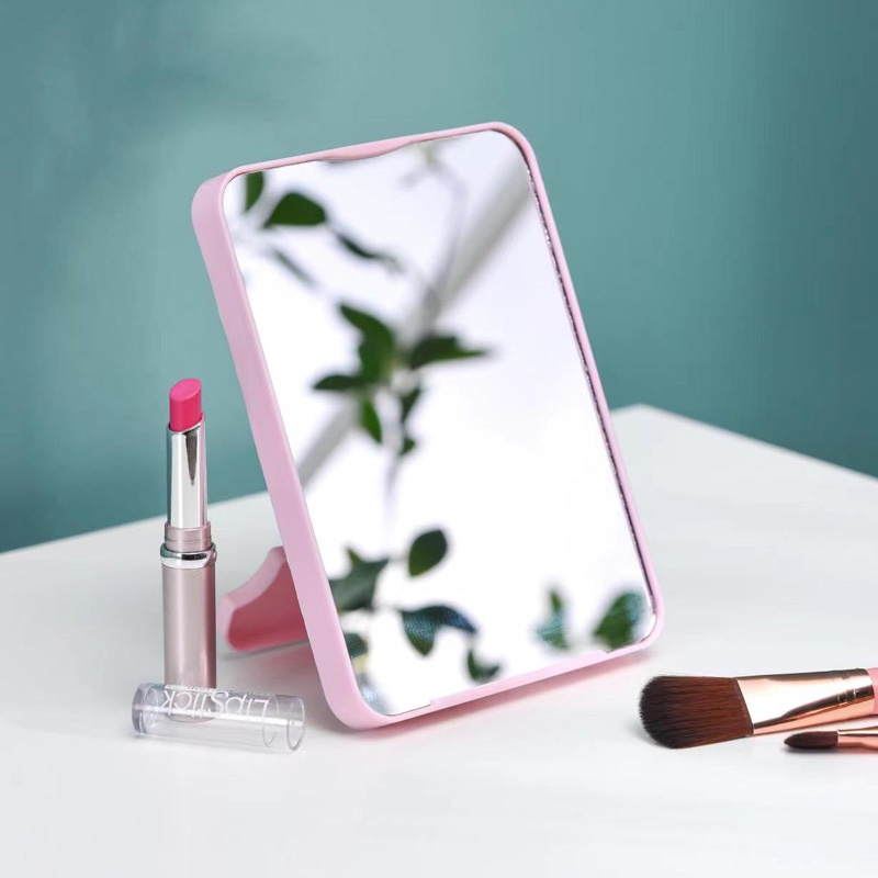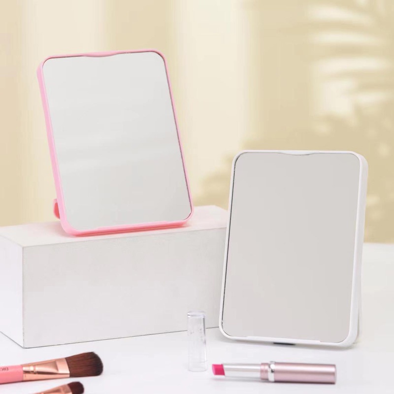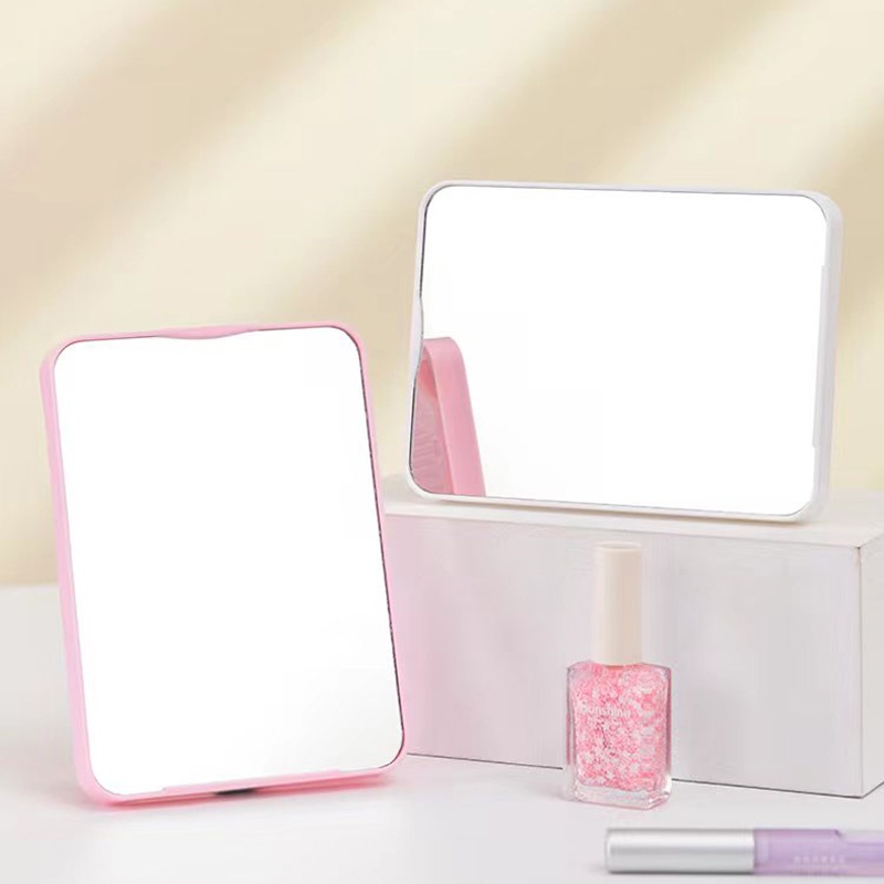 กระจกพับแต่งหน้าแบบพกพา กระจกขนาดเล็กทรงสี่เหลี่ยม กระจกตั้งโต๊ะ เลนส์วัสดุอลูมิเนียม