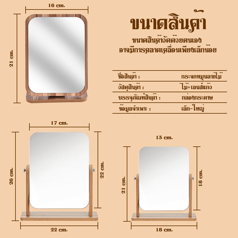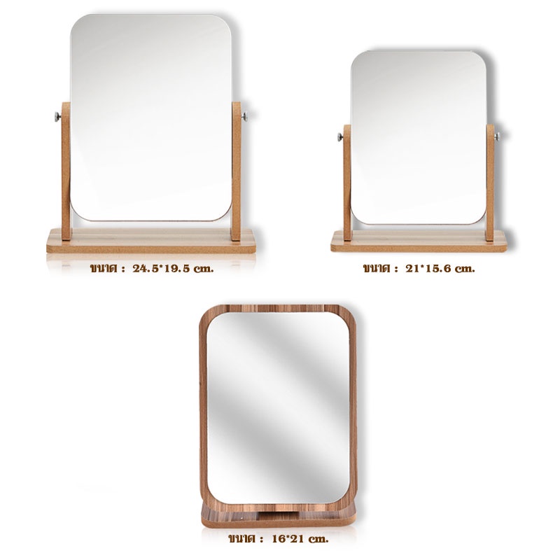 ... บได้ 2.หมุนได้ ***กระจกพับบานใหญ่*** ขนาด: 16 cm * 21cm *** กระจกหมุน ใหญ่*** ขนาดไม้:22 cm * 26 cm ขนาดกระจก: 17cm * 22 cm *** กระจกหมุน เล็ก*** ขนาดไม้ :18 cm * 21 cm ขนาดกระจก: 13cm * 18 cm วิธีดูแล: -ใช้ผ้าที่มีส่วนผสมของแอลกอฮอล์ในการเช็ดตัวกระจก จะทำให้กระจกคุณไม่มีรอยมือหรือรอยเปื้อน ทางร้านจัดส่งสินค้าวันจันทร์-เสาร์ ได้รับสินค้าแล้ว รบกวนลูกค้ารีวิวให้ร้านด้วยนะคะ กรณีสินค้ามีปัญหา สามารถแจ้งปัญหาผ่านแชทได้เลยค่ะ สินค้าของทางร้านรับประกันสินค้าให้ค่ะ ***หมายเหตุ ก่อนแกะกล่องพัสดุทุกครั้ง รบกวนลูกค้าถ่ายคลิปวิดีโอไว้ด้วยนะคะ เพื่อความสะดวกรวดเร็วในการเคลมสินค้าและเป็นหลักฐานยืนยันในกรณีที่สินค้ามีปัญหาค่ะ***