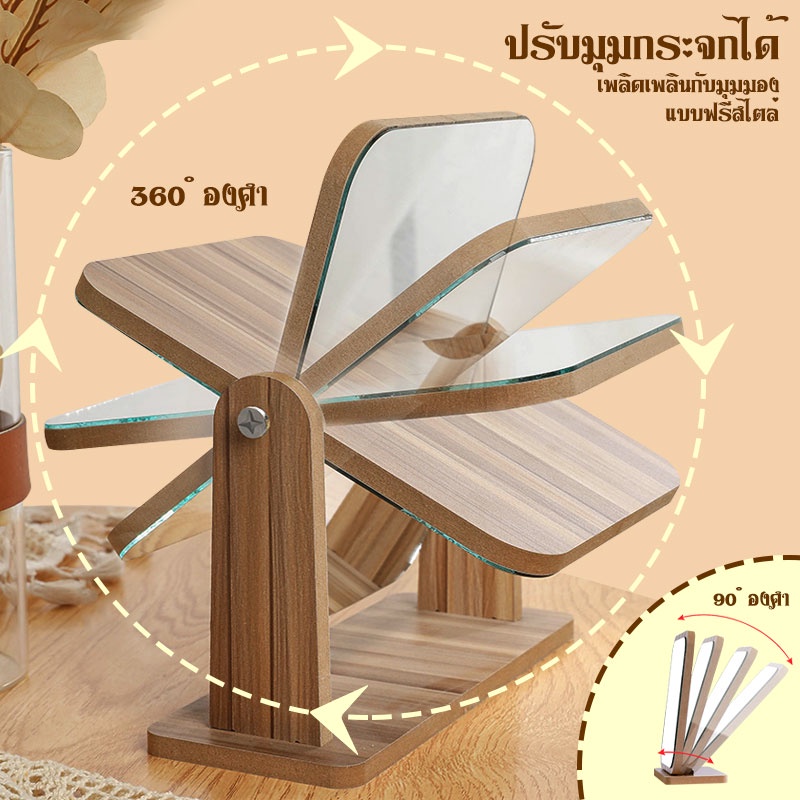 (พร้อมส่ง) กระจกตั้งโต๊ะ กระจกแต่งหน้า มินิมอล ใช้แต่งหน้า หมุน/พับ 4 ขนาด สไตล์เกาหลี สามารถปรับ แบบพกพา