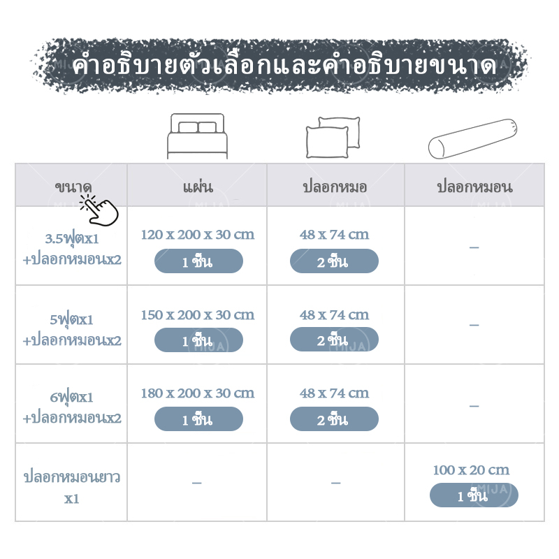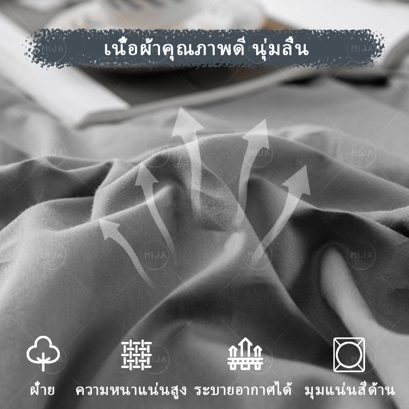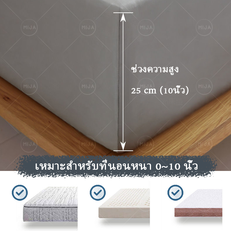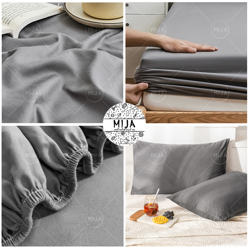 MIJA ผ้าปูที่นอน 3.5ฟุต/5ฟุต/6ฟุต ชุดเครื่องนอนสีพื้น ผ้าปูที่นอนกันไรฝุ่น ผ้ารองกันเปื้อนที่นอน ผ้าปูที่นอนมินิมอล