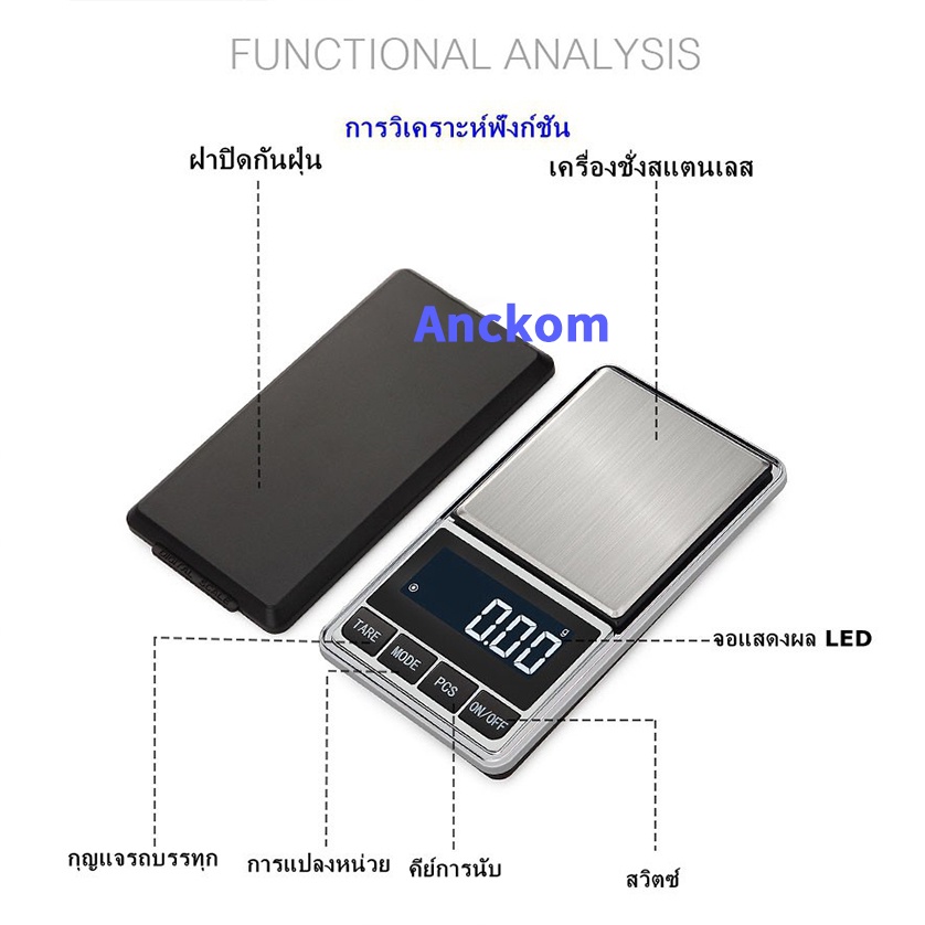 ... ับเรา 😘😘😘คำเตือน: (16) (17) ฟังก์ชันเหมือนกัน แต่รูปลักษณ์ต่างกัน 📌📌📌แหล่งจ่ายไฟ: (16)(17)แบตเตอรี่ AAA 2 ก้อน (ไม่รวมแบตเตอรี่, ไม่รวมสายชาร์จ USB) (83)สายไฟ USB / แบตเตอรี่ AAA 2 ก้อน (ไม่รวมแบตเตอรี่, แถมสายชาร์จ USB 1 เส้น) 😉การตีความความแม่นยำ: [0.1g] การชั่งน้ำหนักขั้นต่ำ: 0.5g ช่วงข้อผิดพลาด: ภายใน 0.3g บวกและลบ [0.01g] การชั่งน้ำหนักขั้นต่ำ: 0.05g ช่วงข้อผิดพลาด: ภายใน 0.03g บวกและลบ 😉คุณสมบัติ - เหมาะสำหรับชั่งงานที่ต้องการความแม่นยำสูงเนื่องจากมีความละเอียดได้ถึง 0.01 กรัมและเหมาะสำหรับชั่งน้ำหนักเครื่องประดับ เพชร ทอง ที่ใช้ความแม่นยำสูง -ขนาดเล็กกระทัดรัด พกพาไปได้ทุกที่ ใช้ถ่าน AAA 2 ก้อน -60วินาที ปิดหน้าจอโดยอัตโนมัติเมื่อไม่ได้ใช้ - รับน้ำหนักสูงสุดได้ 1000 กรัม - มีฟังก์ชั่น ตัดน้ำหนัก (tare) - ไฟบนหน้าจอสามารถเปิด ปิดได้ - สามารถเปลี่ยนหน่วยวัดได้ 6 หน่วยวัด -หน้าจอแสดงผลเป็นตัวเลขดิจิตอล -พกพาสะดวก ฝาปิด ปิดทั้งแป้นกดและถาดชั่ง -5 ปุ่มกด pcs ,tare ,unit ,light ,on/off -มีฟังชั่น tarc ตัดค่าภาชนะให้เป็น 0 -มีฟังชั่นนับจำนวนชิ้น -มีไฟ Black light เปิดปิดได้ -ฝาพับเป็นหนังสังเคราะห์ - ชั่งทอง/เพชร/อาหาร/กาแฟ ฯลฯ 😉ข้อมูลจำเพาะ: สี: เงิน ช่วง/ความแม่นยำ: 1000g/0.1g,500g/0.01g,200g/0.01g, ช่วงข้อผิดพลาด:±0.03g หน่วย: g /oz / tl /gn /ozt / ct แหล่งจ่ายไฟ: แบตเตอรี่ AAA x 2 (ไม่รวม) ปิดอัตโนมัติ: 1 นาที ขนาดรายการ: 11.5*6.5*1.7 cm 💝แพ็คเกจรวมถึง: 1 * เครื่องชั่งดิจิตอล 1 * คู่มือผู้ใช้ #ตาชั่งดิจิตอล#เครื่องชั่งดิจิตอล#ตาชั่ง#เครื่องชั่งน้ําหนัก ดิตจิตอล #กิโลดิจิตอล#ตาชั่งน้ำหนัก#เครื่องชั่ง#ตาชั่งอาหาร#ตาชั่งกาแฟ#ตาชั่งดิจิตอล 0.01 กรัม