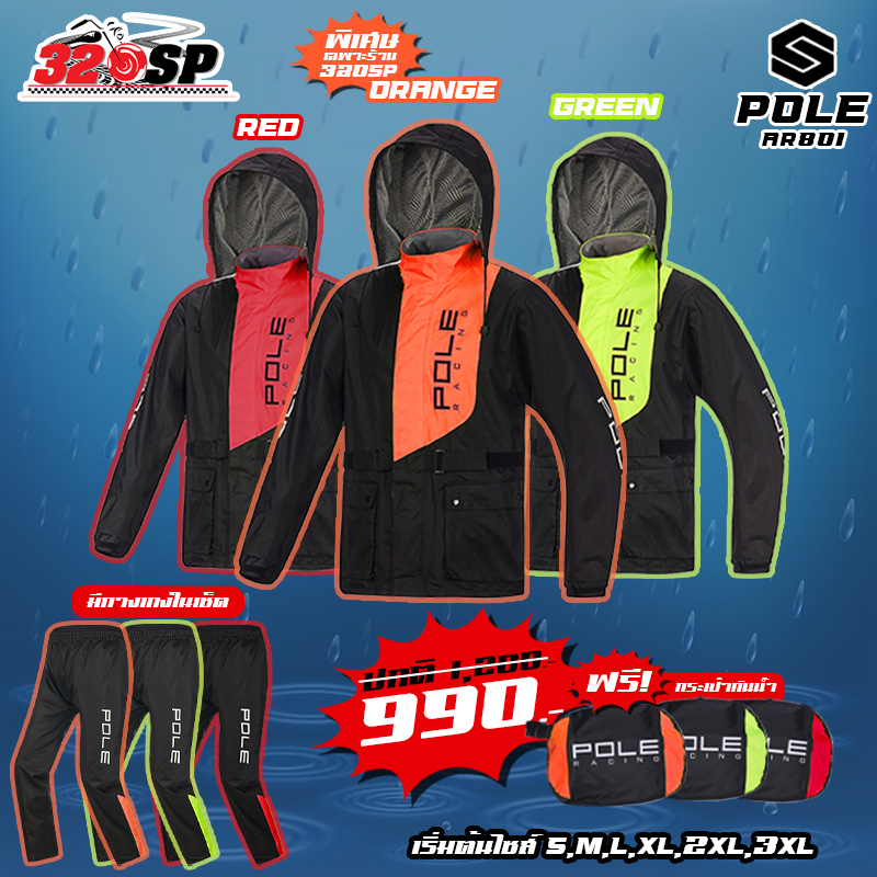 ชุดกันฝน POLE RACING (พร้อมกระเป๋าเก็บ) #สีดำเขียว/สีดำแดง และสึใหม่ล่าสุดสีส้ม วางจำหน่ายเฉพาะ 320SP เท่านั้น รายละเอียดสินค้า ผ้าร่มกันฝน พกพาง่ายสวมใส่ง่ายๆ ฝนตกหนักแค่ไหนก็ไม่มีหวั่นกันเลย พร้อมกระเป๋าเก็บ ชุดกันฝน มีไซส์ M,L,XL, 2XL 320SP ยินดีต้อนรับครับ 🙏🙏 สินค้ามีวางจำหน่