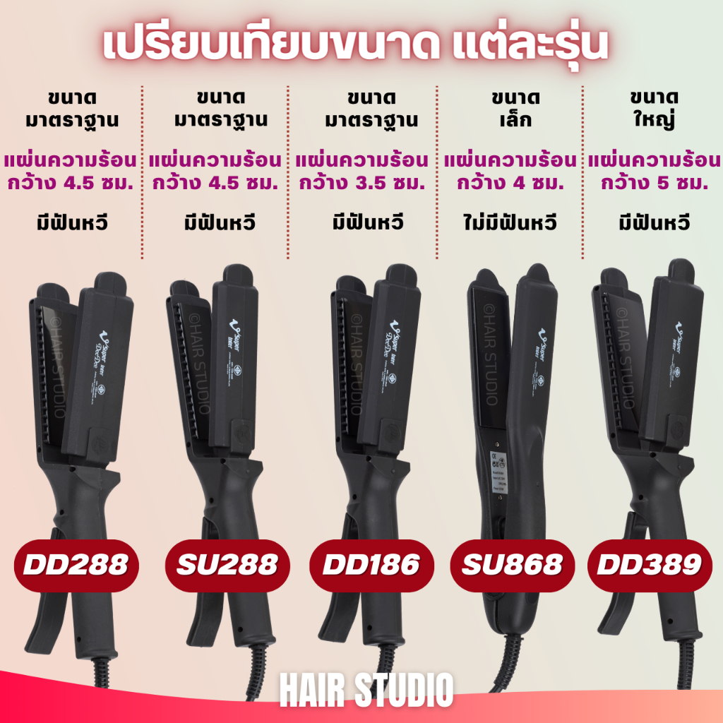 ... ับ 220, 200, 180, 160 * แผ่นเคลือบเซรามิค หลังใช้ผมเงางาม ไม่ทำให้ผมเสีย * กล่องสีแดงเลือดหมู จะมีคำว่า DeeDee อยู่ด้านบนซ้ายนะคะ ส่วนคำว่า SU288 เป็นโค้ดของรุ่นแรกนะคะ * ใช้ไฟ 220-240 V เท่านั้น ไม่สามารถนำไปใช้กับประเทศที่ใช้ไฟ 110 V ได้ค่ะ เช่น ญี่ปุ่น ไต้หวัน อเมริกา ⚠️ประกันสินค้า⚠️ ✅ รับประกันสินค้า 7 วัน (นับจากวันที่ได้รับสินค้าตามในระบบขนส่ง) หากสินค้าชำรุด เสียจากตัวสินค้า ทางร้านจะทำการเปลี่ยนใหม่ ✅ รับประกันแผ่นความร้อน 6 เดือน ✅การรับประกันสินค้าจะไม่ครอบคลุมในกรณีดังต่อไปนี้ (อาจต้องมีค่าใช้จ่ายในการซ่อม หรือเปลี่ยนสินค้ารวมถึงกรณีที่ไม่อาจเปลี่ยนหรือซ่อมได้) - การเสียหายโดยเหตุจากการใช้ผิดวิธี อุบัติเหตุต่างๆ เช่น ทำตก แตกหัก ผลิตภัณฑ์ที่ถูกแกะ ถูกงัด ดัดแปลง ถูกซ่อมแซม - สินค้าเสียหายโดยเจตนาของผู้ใช้งานเอง - สินค้าที่เสียหายจากการไม่ระมัดระวังของผู้ใช้งาน สินค้ามีสภาพผิดปกติทางรูปทรงได้แก่ แตก ,หัก, บิ่น, งอ, ยุบ, เบี้ยว, ร้าว ✅ ทางร้านจะไม่คืนเงินในกรณีไม่พอใจสินค้า,สินค้าเสียหรือซื้อไปแล้วสินค้าไม่ได้ใช้งาน กรณีที่ไม่พอใจในตัวสินค้า กรุณาติดต่อทางร้านโดยตรงเพื่อรับทราบปัญหาของลูกค้า กรณีเปลี่ยนสินค้าที่เสีย ขอสงวนสิทธิ์ในการเปลี่ยนเป็นรุ่นเดิมเท่านั้น หากต้องการรุ่นอื่นกรุณาชำระค่าสินค้าส่วนต่างเพิ่มเติมด้วย กรณีที่ลูกค้าซื้อไปแล้วไม่ได้ใช้งาน ทางร้านไม่มีนโยบายคืนเงินในกรณีนี้