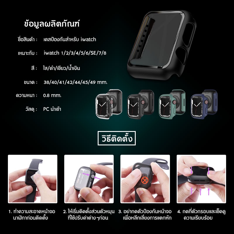 ... ries 1/2/3) ▶สำหรับ iWatch 42mm (Series 1/2/3 ) ▶สำหรับ iWatch 40mm (Series 6/SE/5/4) ▶สำหรับ iWatch 44mm (Series 6/SE/5/4) ▶สำหรับ iWatch 41mm (Series 7/8/9) ▶สำหรับ iWatch 45mm (Series 7/8/9) ▶สำหรับ iWatch 49mm (Series 8) รายการบรรจุ 🛠: smart watch case*1 คุณสมบัติ: 1. ฮาร์ดพีซีที่ทนทานพร้อมวัสดุกระจกนิรภัย 2. กระจกนิรภัยเต็มหน้าจอนาฬิกาความไวสัมผัสสูง 3. รูปทรงบางเฉียบและน้ำหนักเบาทำให้คุณไม่รู้สึกว่ามีขนาดใหญ่ 4. เข้าถึงการควบคุมปุ่มเซ็นเซอร์ทั้งหมดของนาฬิกา 5. ตัวป้องกันหน้าจอในตัวช่วยป้องกันนาฬิกาของคุณจากฝุ่นรอยนิ้วมือรอยขีดข่วนและความเสียหาย 6. ติดตั้งและถอดออกได้ง่าย 7. ชาร์จโดยตรงไม่จำเป็นต้องถอดนาฬิกา 🧡🧡💌กรณีได้รับสินค้าไม่ครบ สินค้าขาด เเตก ต้องแจ้งภายใน 24 ชม. ** พร้อมภาพถ่าย วิดีโอตอนแกะกล่องสินค้า ** หากไม่มีหลักฐาน ข้อมูลตามที่ทางร้านแจ้งไปข้างต้น ทางร้านขอสงวนสิทธิ์ในการ เคลมสินค้า/เปลี่ยนสินค้าใหม่ ทุกกรณีค่ะ !! #awatch #awatchcase #iwatch #case #cover #a #iwatchstrap #series1 #series2 #series3 #series4 #series5 #38mm #40mm #42mm #44mm