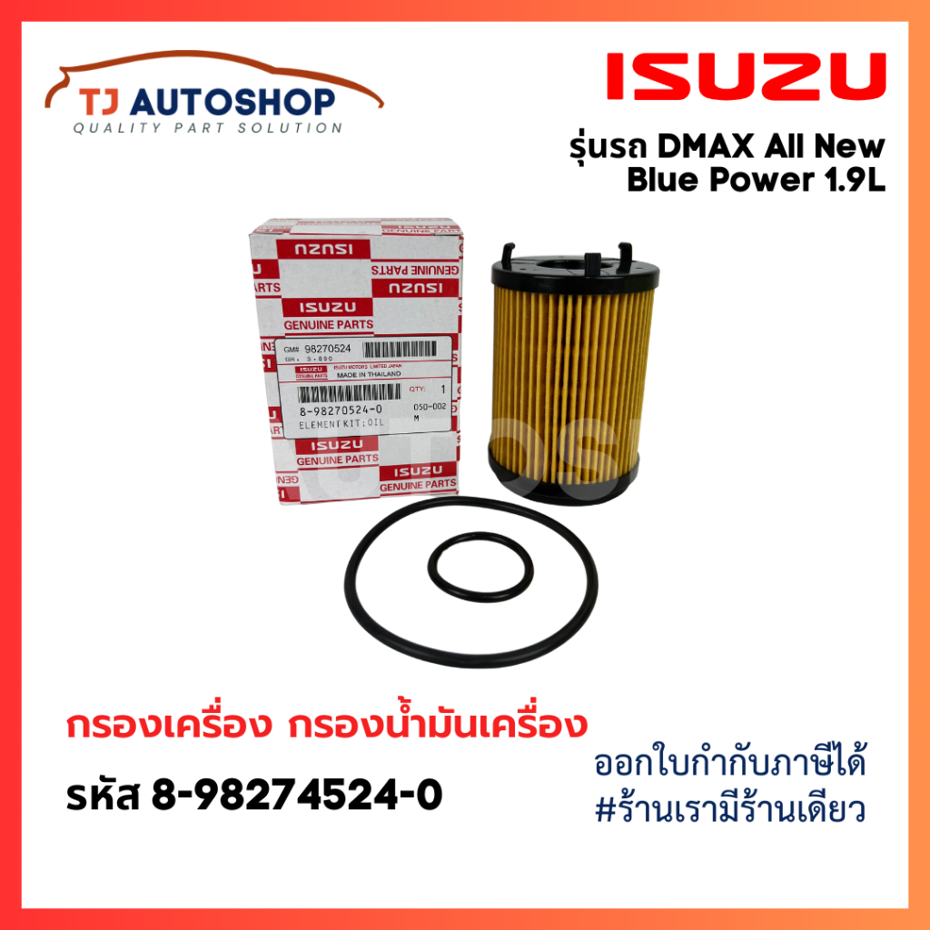 ISUZU กรองเครื่อง DMax Blue Power 1.9L ปี 2016- ไส้กรองน้ำมันเครื่อง เบอร์แท้ 8-98270524-0 ดีแมก