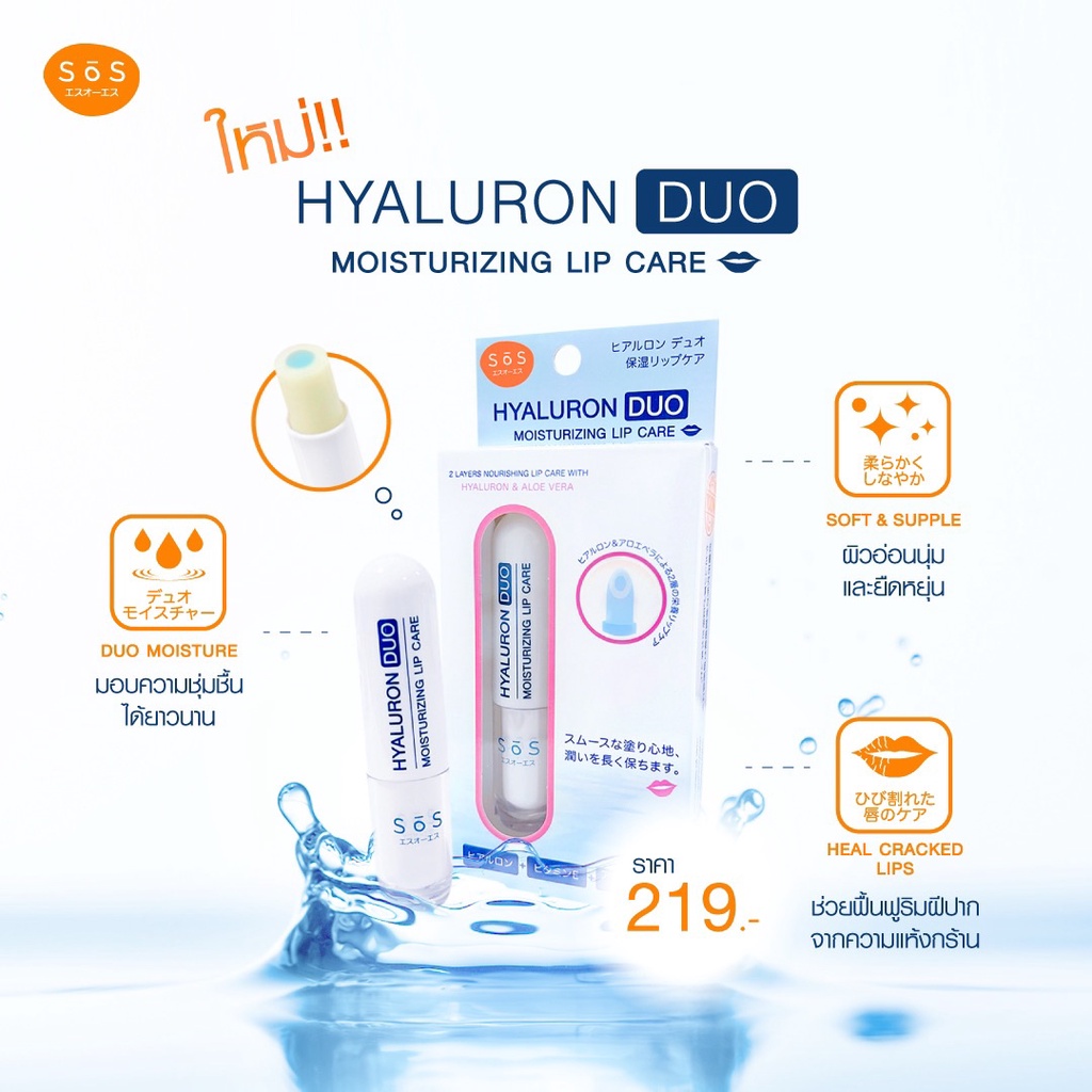 SOS Hyaluron DUO Moisturizing Lip Careลิปบำรุง2ชั้นริมฝีปากนุ่มอวบอิ่มชุ่มชื้นดูสุขภาพดีปกป้องจากความแห้งกร้านสินค้าใหม่