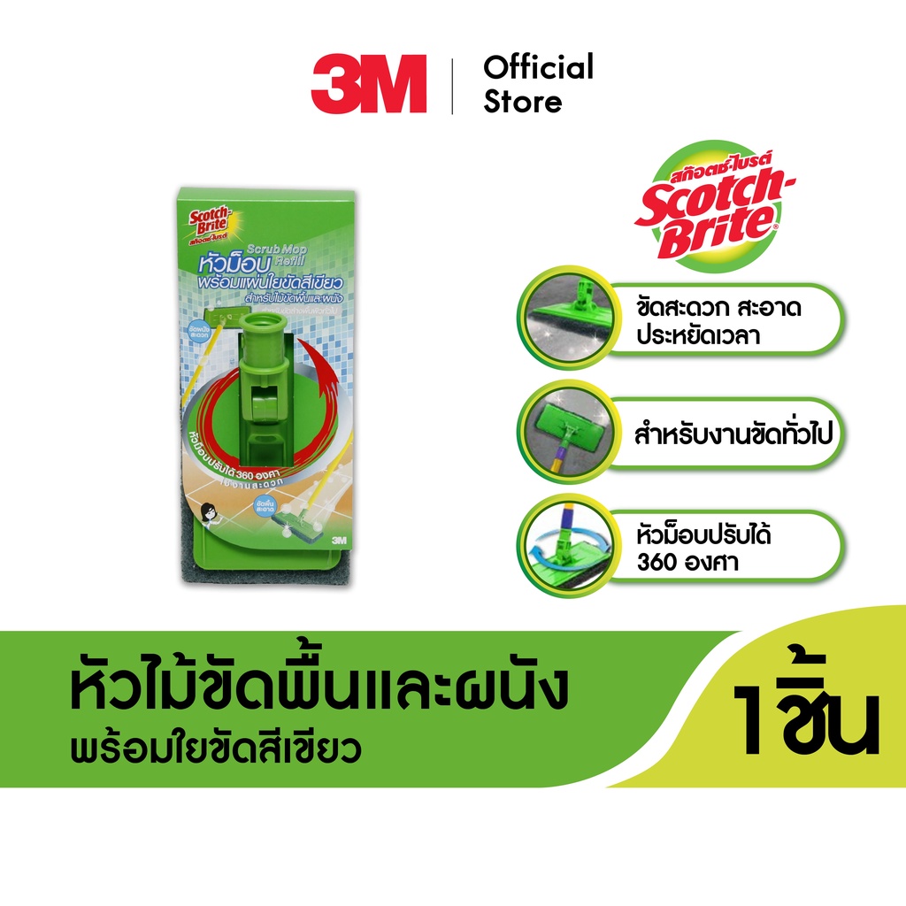 3M™ Scotch-Brite™ สก๊อตช์-ไบรต์ หัวม็อบพร้อมแผ่นใยขัด, หัวม็อบหมุนได้ 360 องศา, สำหรับไม้ขัดพื้นและผนัง