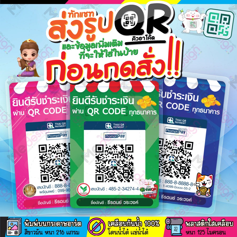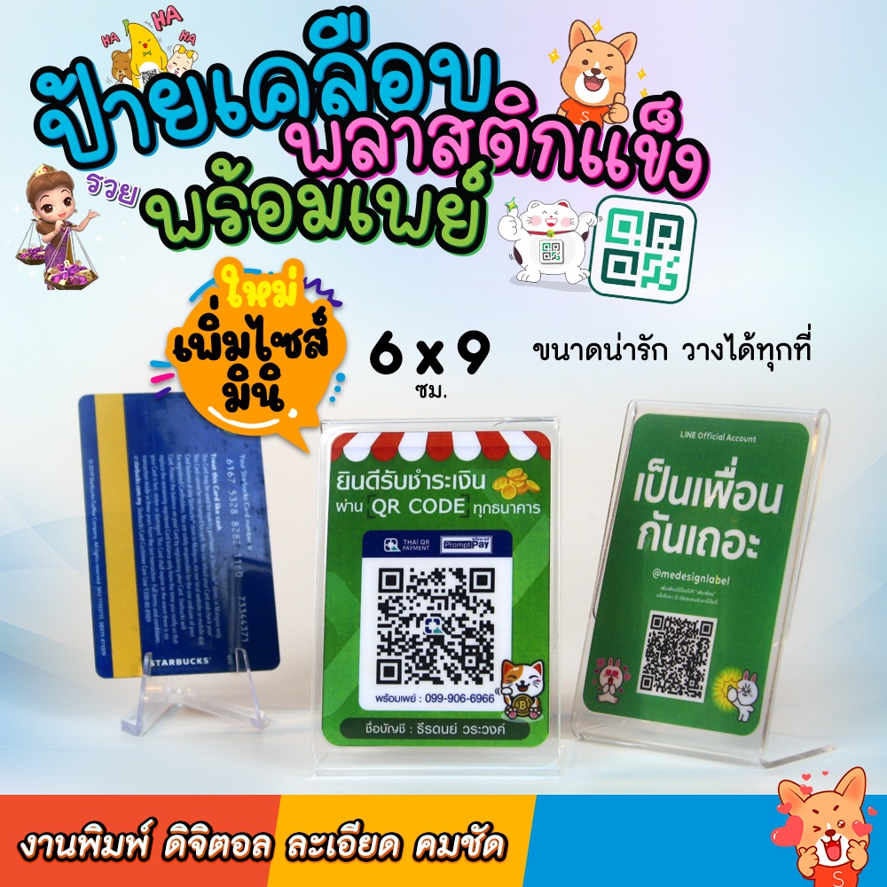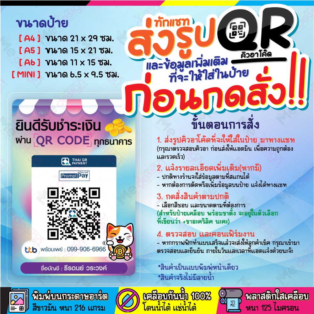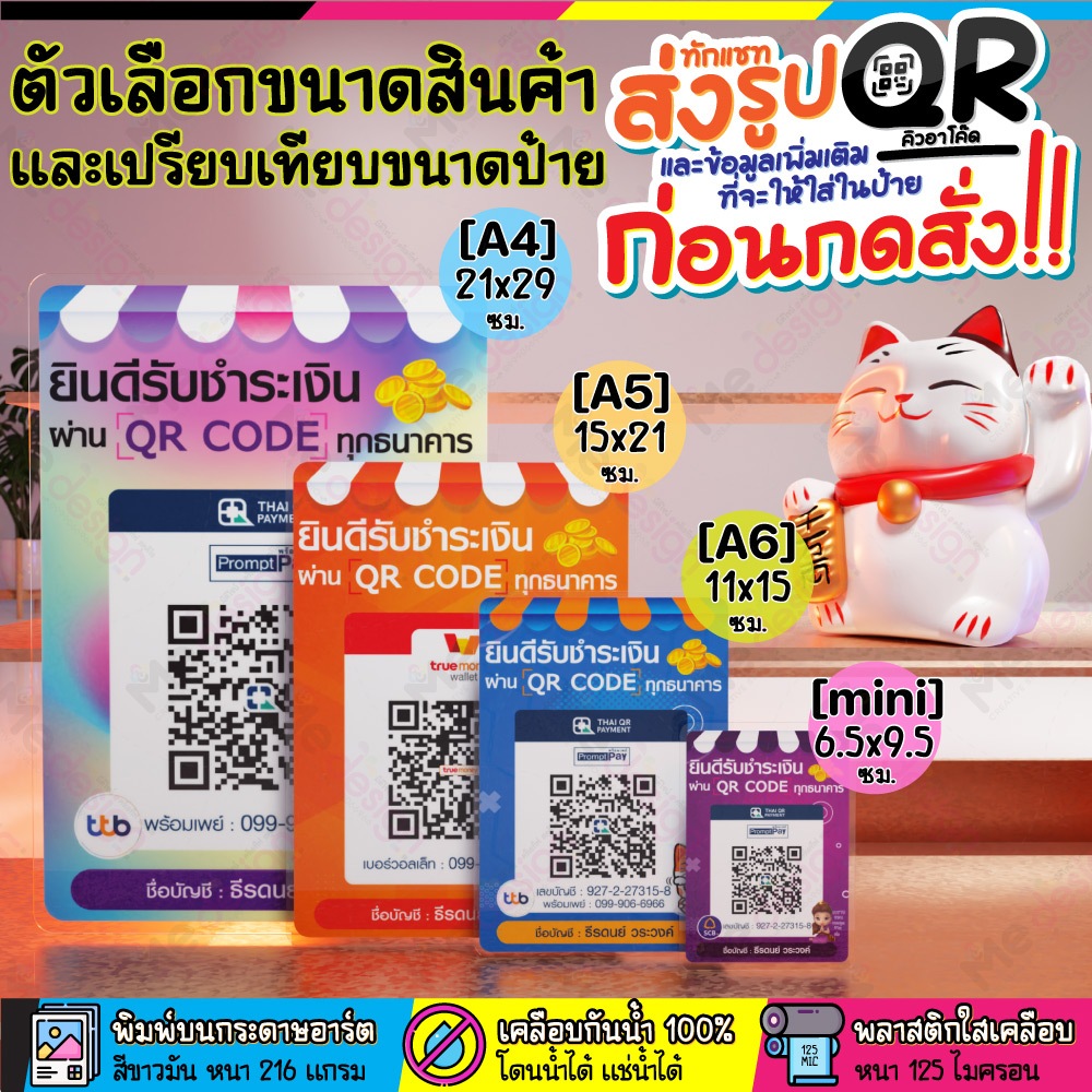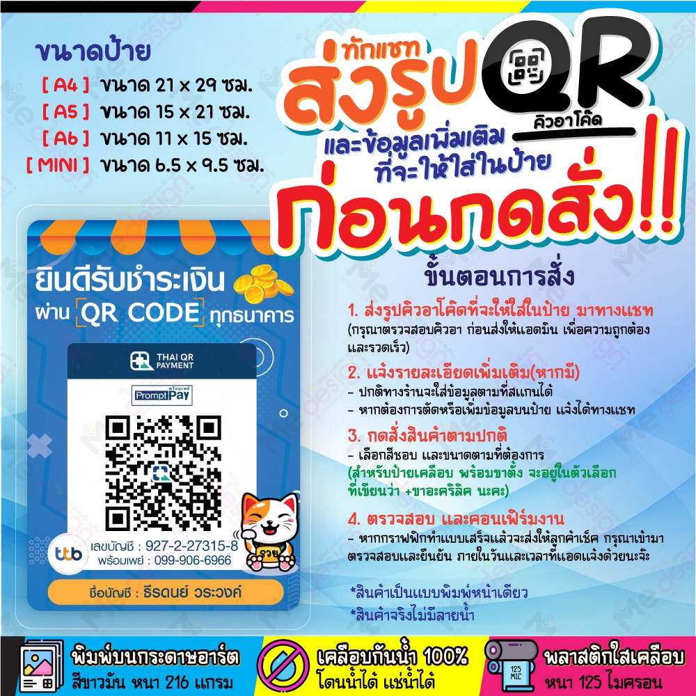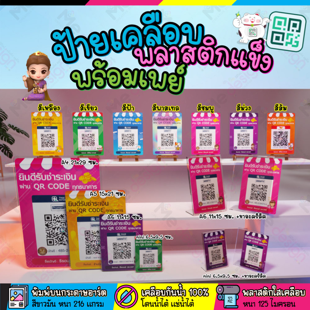 ป้ายสแกน คิวอาร์โค๊ดพร้อมเพย์ พร้อมเคลือบพลาสติกแข็ง หลายขนาดเลือกได้ ป้ายเคลือบ พลาสติกแข็ง