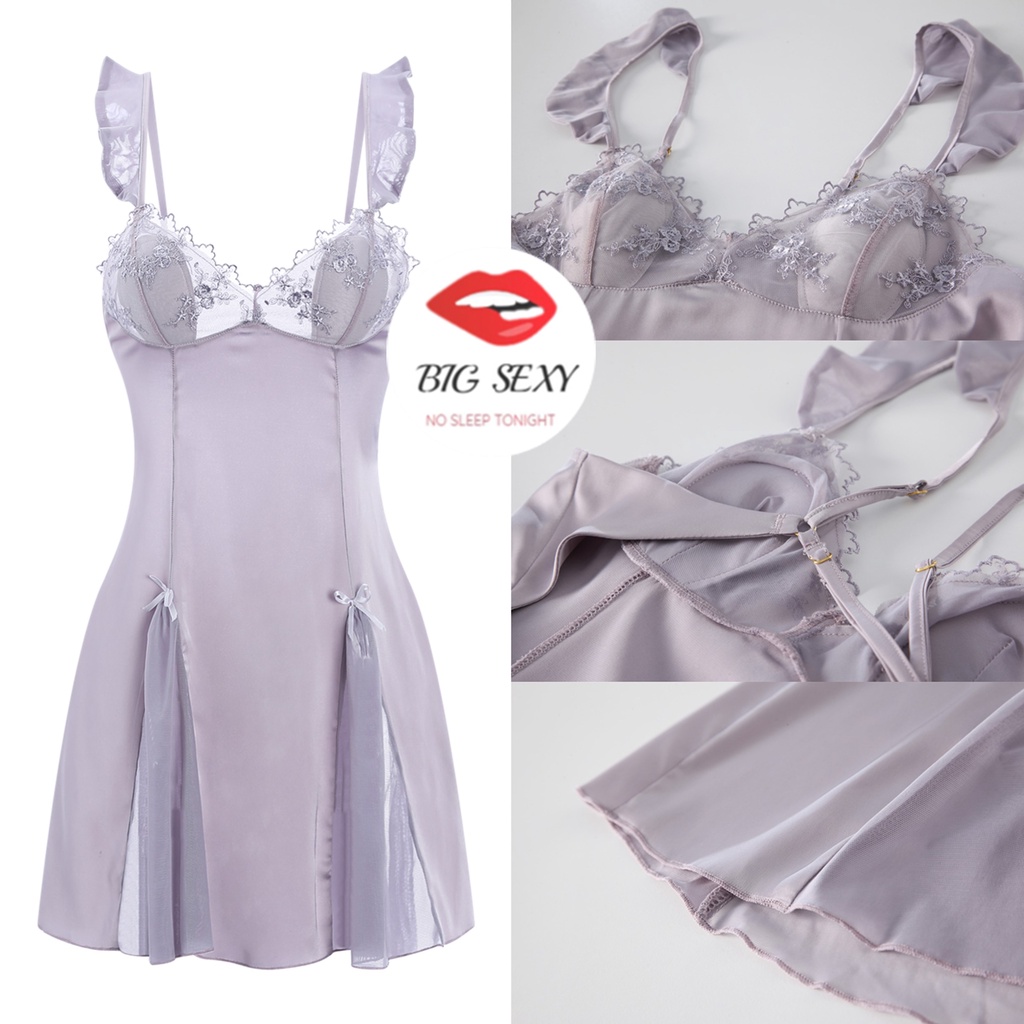 ชุดนอนซาติน เซ็กซี่ 👑เกรดแท้พรีเมี่ยม S2405,S1729 💫 มีหลายไซต์ M-5XL นน 40-100kg ชุดนอนสายเดี่ยว ตกแต่งลูกไม้ S-654