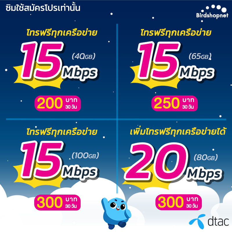 ... ตัดรอบจัดส่งสินค้า 11.00 ของทุกวัน (ส่งของทุกวัน ) ————————————————————————————— 👉🏻 กรุณาอ่านก่อนสั่ง ((สำคัญมาก)) 👈🏻 ‼️ สมัครโปร ภายใน 31 ต.ค. 2567 เท่านั้น ‼️ (หากได้รับสินค้าเกินวัน ทักแชททางร้านเพื่ออัพเดตโปร) 🚫 หากไม่เปิดใช้งาน ซิมจะหมดอายุ 31 ธ.ค. 2567 🚫 ☑️ใบคู่มือที่แนบไปพร้อมสินค้า จะบอกขั้นตอนการลงทะเบียนและสมัครโปร☑️ 🔥 ต้องลงทะเบียนและเปิดใช้งานแพคเกจภายในวันเดียวกันเท่านั้น!! 🔥 🔸 ซิมทุกซิมเป็นซิมใหม่ยังไม่ลงทะเบียน 🔸 ลงทะเบียนหลังรับสินค้าเท่านั้น 🔸 จำเป็นต้องลงทะเบียนซิม และสมัครแพ็กเกจ ภายในวันเดียวกันเท่านั้น 🔸 ชำระค่าแพ็กเกจก่อนใช้งาน 🔸 ไม่เกิน 1 ชม. ทางร้านจะเปิดซิมในระบบให้ ————————————————————————————— ✅ จำเป็นต้องลงทะเบียนและเปิดใช้งาน ภายในวันเดียวกันเท่านั้น!! ❌❌ ไม่แนะนำให้ซื้อเก็บไว้ เพราะโปรเน็ตทางค่ายอาจมีการเปลี่ยนแปลงได้ ❌❌ ————————————————————————————— • แพ็กเกจตามที่โฆษณา อาจมีการปรับเปลี่ยนตามที่บริษัทกำหนด • ⚠️ แนะนำสอบถามแพ็กเกจอัพเดตล่าสุด ณ วันลงทะเบียน ⚠️ 🌐 เน็ตเร็ว 15 Mbps (30+10 = 40GB) + โทรทุกค่าย 📞 โทรฟรีทุกเครือข่าย (ครั้งละ 15 นาที) 💰 200 บาท / 30 วัน (👆🏻เมื่อใช้งานครบกำหนด จะใช้ได้ต่อที่ความเร็ว 384 Kbps ไม่อั้นจนครบ 30 วัน ) เดือนที่ 2-6 แถมเน็ตเพิ่มอีก 20GB รวมได้เน็ต 60GB 🌐 เน็ตเร็ว 15 Mbps (55+10 = 65GB) + โทรทุกค่าย 📞 โทรฟรีทุกเครือข่าย (ครั้งละ 15 นาที) 💰 250 บาท / 30 วัน (👆🏻เมื่อใช้งานครบกำหนด จะใช้ได้ต่อที่ความเร็ว 384 Kbps ไม่อั้นจนครบ 30 วัน ) เดือนที่ 2-6 แถมเน็ตเพิ่มอีก 20GB รวมได้เน็ต 75GB 🌐 เน็ตเร็ว 15 Mbps (80+20 = 100GB) + โทรทุกค่าย 📞 โทรฟรีทุกเครือข่าย (ครั้งละ 15 นาที) 💰 300 บาท / 30 วัน (👆🏻เมื่อใช้งานครบกำหนด จะใช้ได้ต่อที่ความเร็ว 1 Mbps ไม่อั้นจนครบ 30 วัน ) เดือนที่ 2-6 แถมเน็ตเพิ่มอีก 20GB รวมได้เน็ต 120GB 🌐 เน็ตเร็ว 20 Mbps (เน็ตอย่างเดียว 60+20 = 80GB) 💰 300 บาท / 30 วัน (👆🏻เมื่อใช้งานครบกำหนด จะใช้ได้ต่อที่ความเร็ว 1 Mbps ไม่อั้นจนครบ 30 วัน ) เดือนที่ 2-6 แถมเน็ตเพิ่มอีก 20GB รวมได้เน็ต 100GB 🌐 เน็ตเร็ว 20 Mbps (60+20 = 80GB) + โทรทุกค่าย 📞 โทรฟรีทุกเครือข่าย (ครั้งละ 15 นาที) 💰 359 บาท / 30 วัน (👆🏻เมื่อใช้งานครบกำหนด จะใช้ได้ต่อที่ความเร็ว 1 Mbps ไม่อั้นจนครบ 30 วัน ) เดือนที่ 2-6 แถมเน็ตเพิ่มอีก 20GB รวมได้เน็ต 100GB 🌐 เน็ตเร็ว 30 Mbps (เน็ตอย่างเดียว 120GB) 💰 350 บาท / 30 วัน (👆🏻เมื่อใช้งานครบกำหนด จะใช้ได้ต่อที่ความเร็ว 1 Mbps ไม่อั้นจนครบ 30 วัน ) 🌐 เน็ตเต็มสปีด วิ่งสูงสุด 1,000 Mbps (เน็ตอย่างเดียว 100+20 = 120GB) 💰 399 บาท / 30 วัน (👆🏻เมื่อใช้งานครบกำหนด จะใช้ได้ต่อที่ความเร็ว 1 Mbps ไม่อั้นจนครบ 30 วัน ) เดือนที่ 2-6 แถมเน็ตเพิ่มอีก 20GB รวมได้เน็ต 140GB 🌐 เน็ต 10 Mbps ไม่ลดสปีด ไม่จำกัด GB 💰 482 บาท / 30 