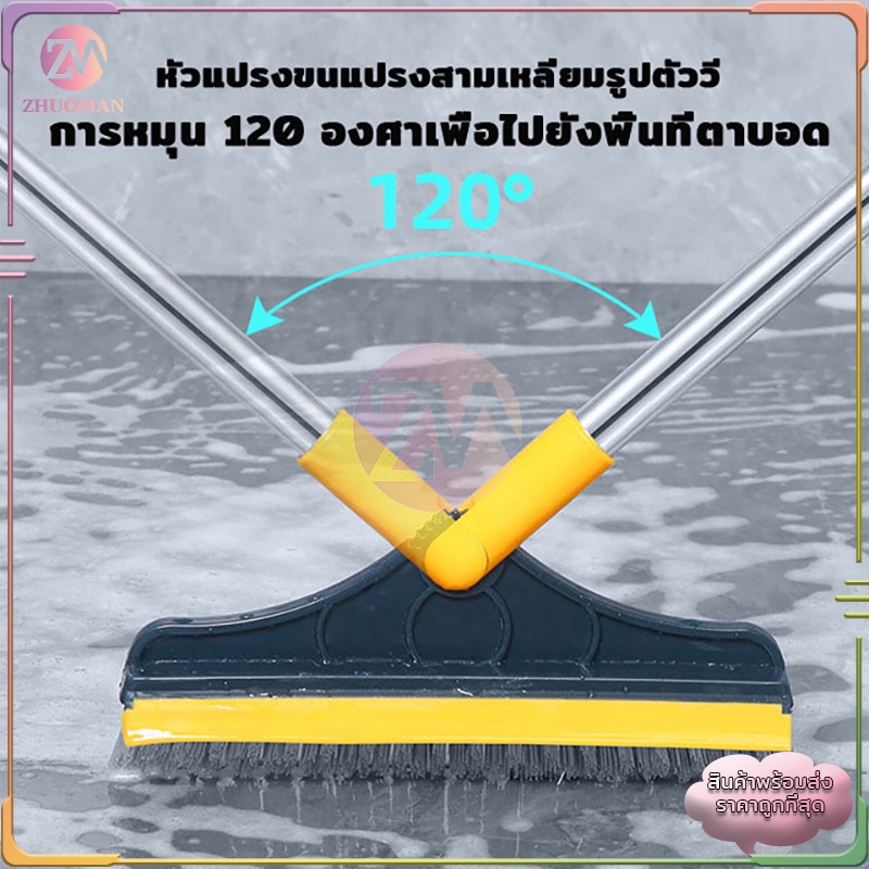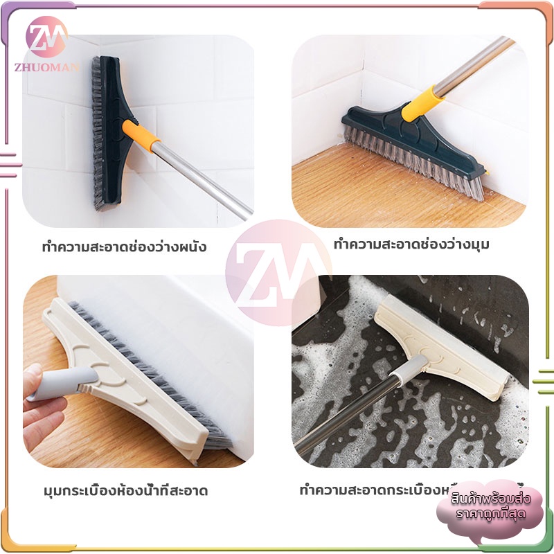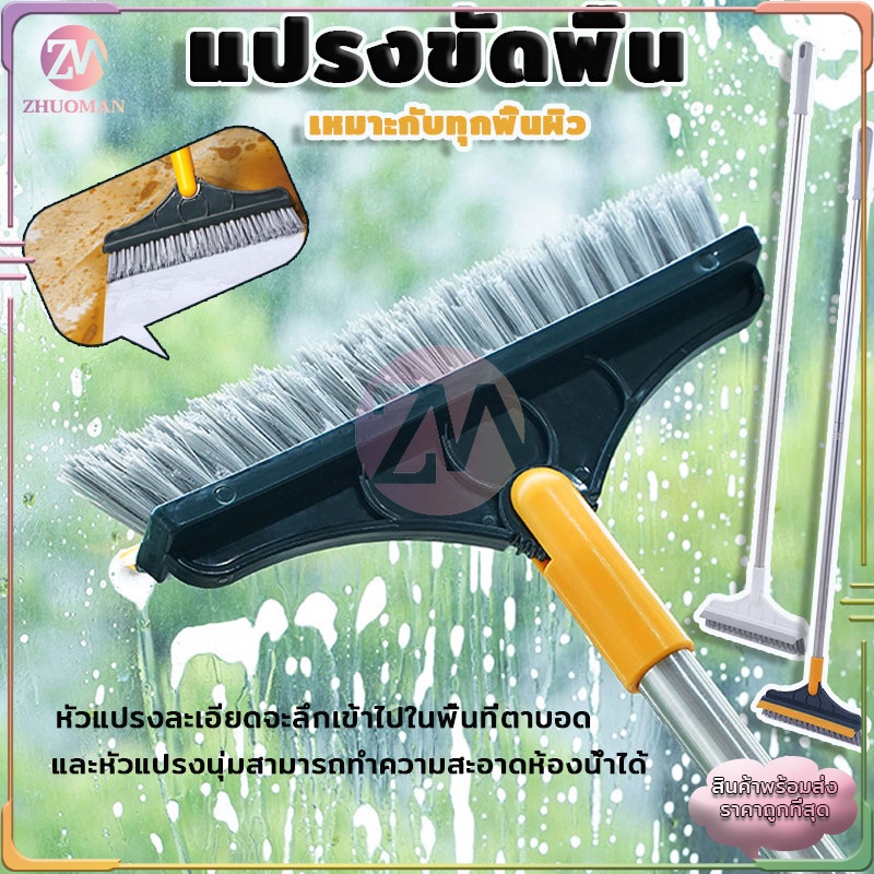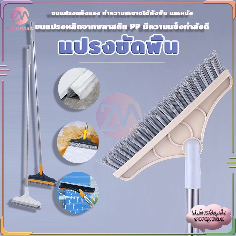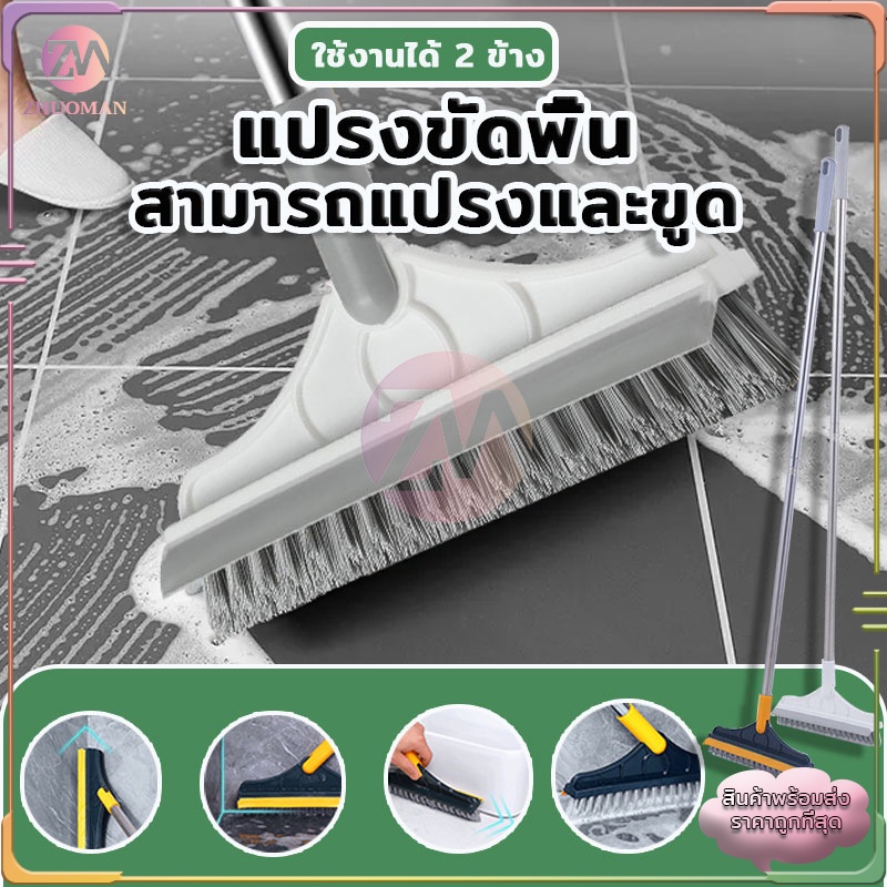 แปรงขัดพื้น 2in1 ปาดน้ำ นด้ามยาว ผลิตจากพลาสติก PP มีความแข็งกำลังดี ได้ทุกซอกทุกมุม มี 2 ​​สี