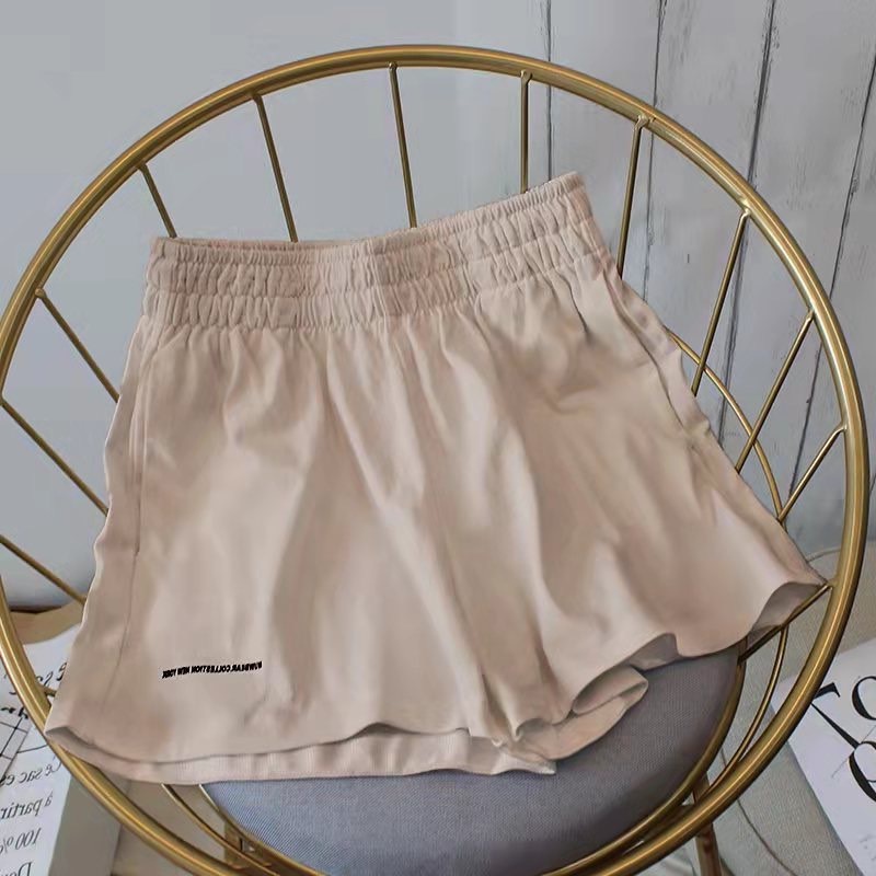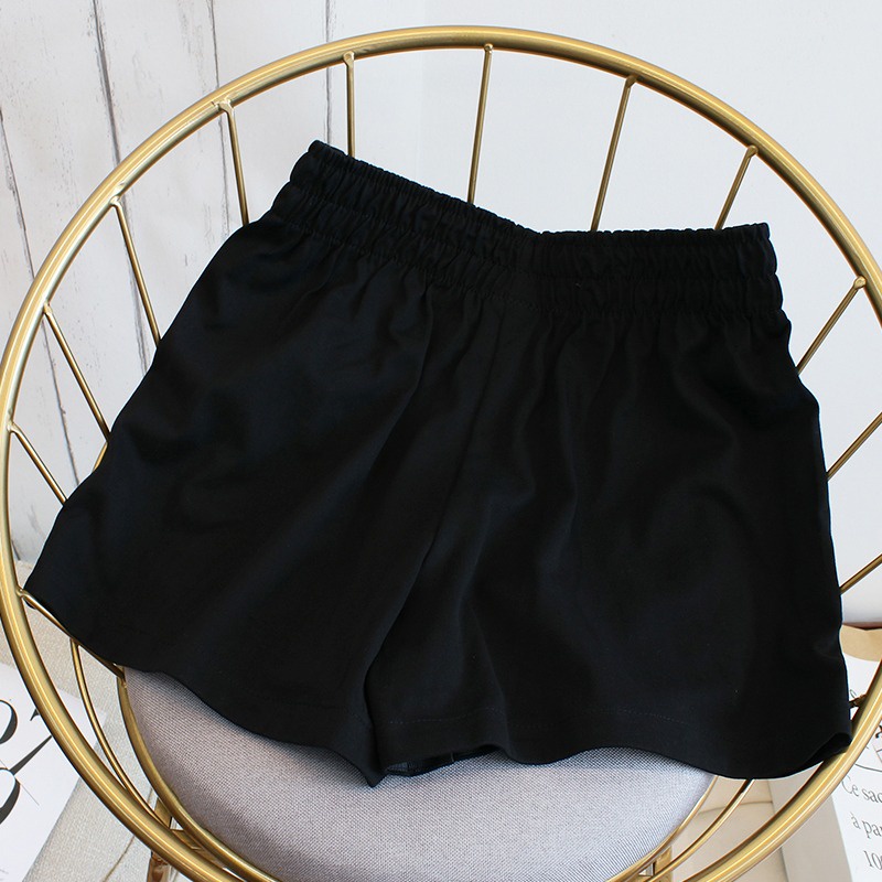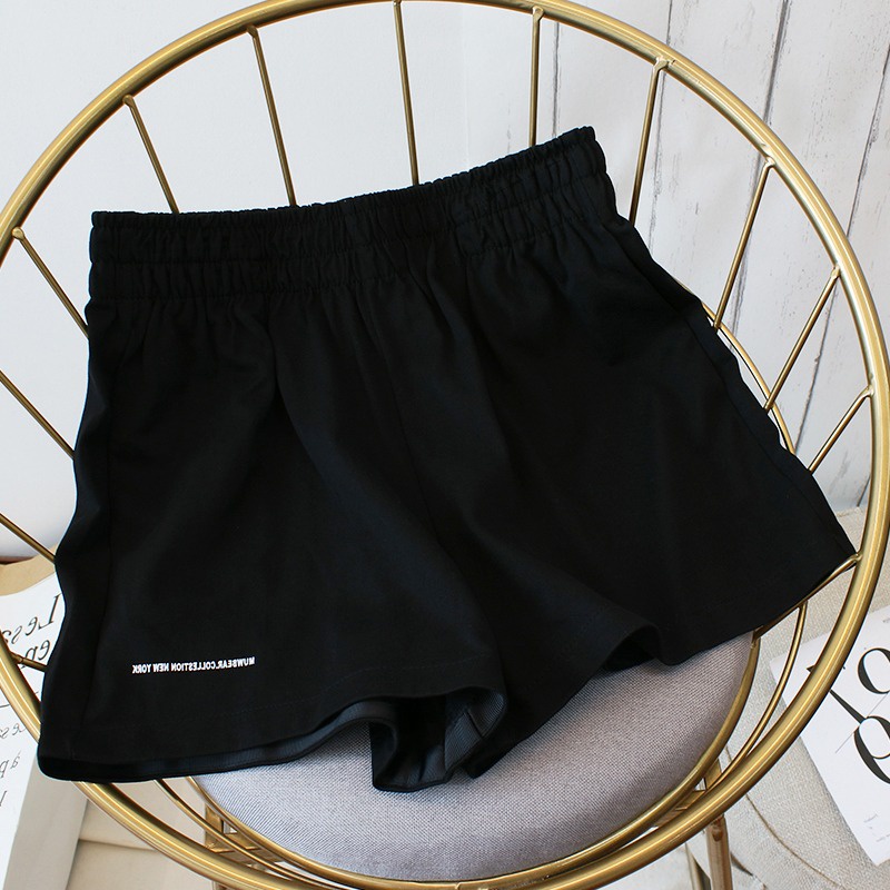 กางเกงขาสั้นผู้หญิง หน้าร้อน ขาสั้นแฟชั่น กระเป๋า2ข้าง ขากว้าง เอวยางยืด เกงกีฬาขาวดำ สปอร์ต ลำลอง