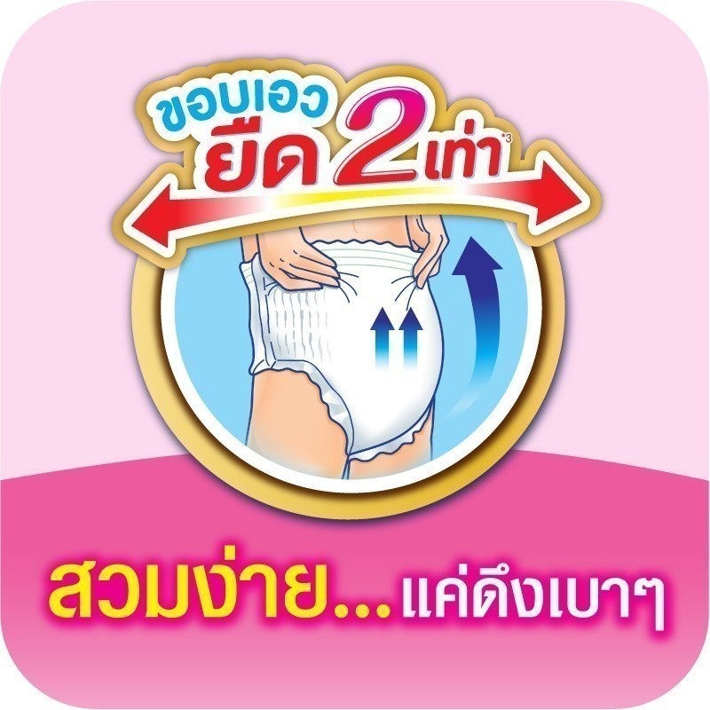 ... น ●ซึมซับมากถึง 600cc กระชับ ระบายอากาศได้ดี ●แอนตี้แบคโพลิเมอร์ ด้วยชุดซึมซํบที่มีส่วนผสมของแอนตี้แบคโพลิเมอร์ ช่วยลดการสะสมของแบคทีเรีย สาเหตุของกลิ่นไม่พึงประสงค์ ●ตะเข็บข้างฉีกง่าย ง่ายต่อการฉีกและถอดออกโดยไม่เลอะเทอะ Lifree Rehabili Pants Comfort wearing…easy to move ●Easy to wear with "2 times flexible waistline" Easy for elderlies and caretaker to put on or take off diapers by themselves ● 360° waistline reduce stuffiness, comfortable wearing like resting skin all day ●Comfort slim but large absorbed to 600cc great breathable ●Antibac Polymer Reducing bacteria accumulation cause of unpleasant smell