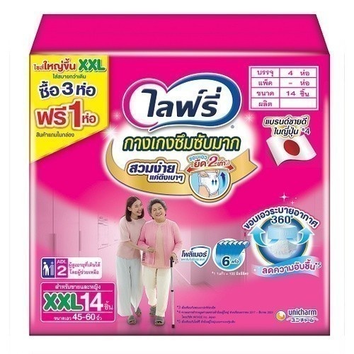 [เลือกไซส์เลย] ไลฟ์รี่ Lifree ผ้าอ้อมผู้ใหญ่ กางเกงซึมซับมาก ไซส์ M - XXL (3+1 แพ็ค)