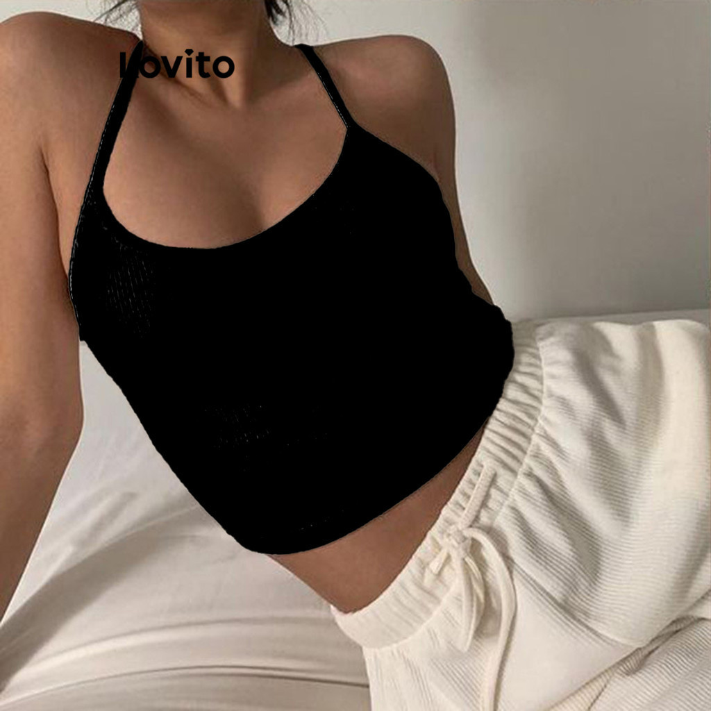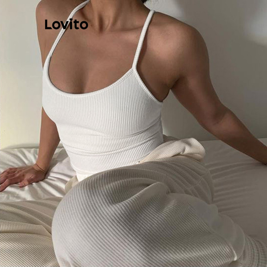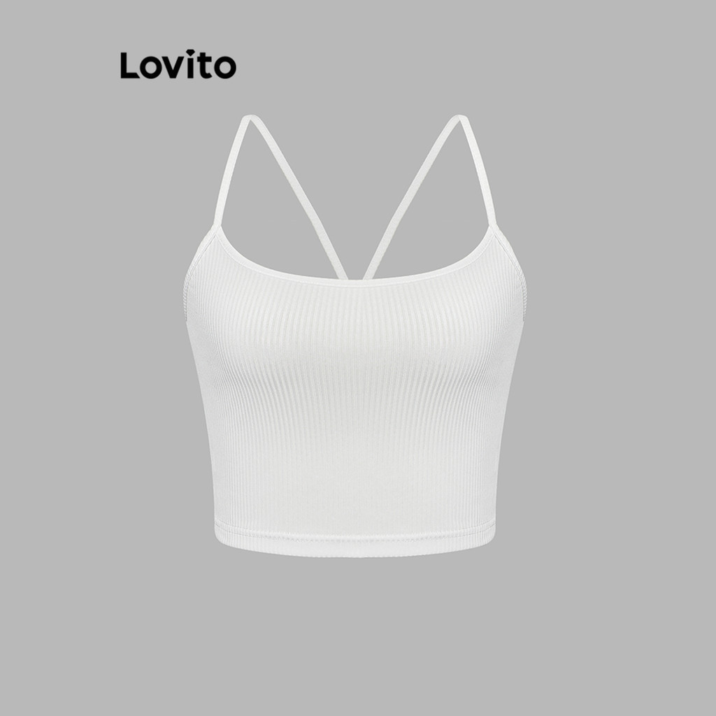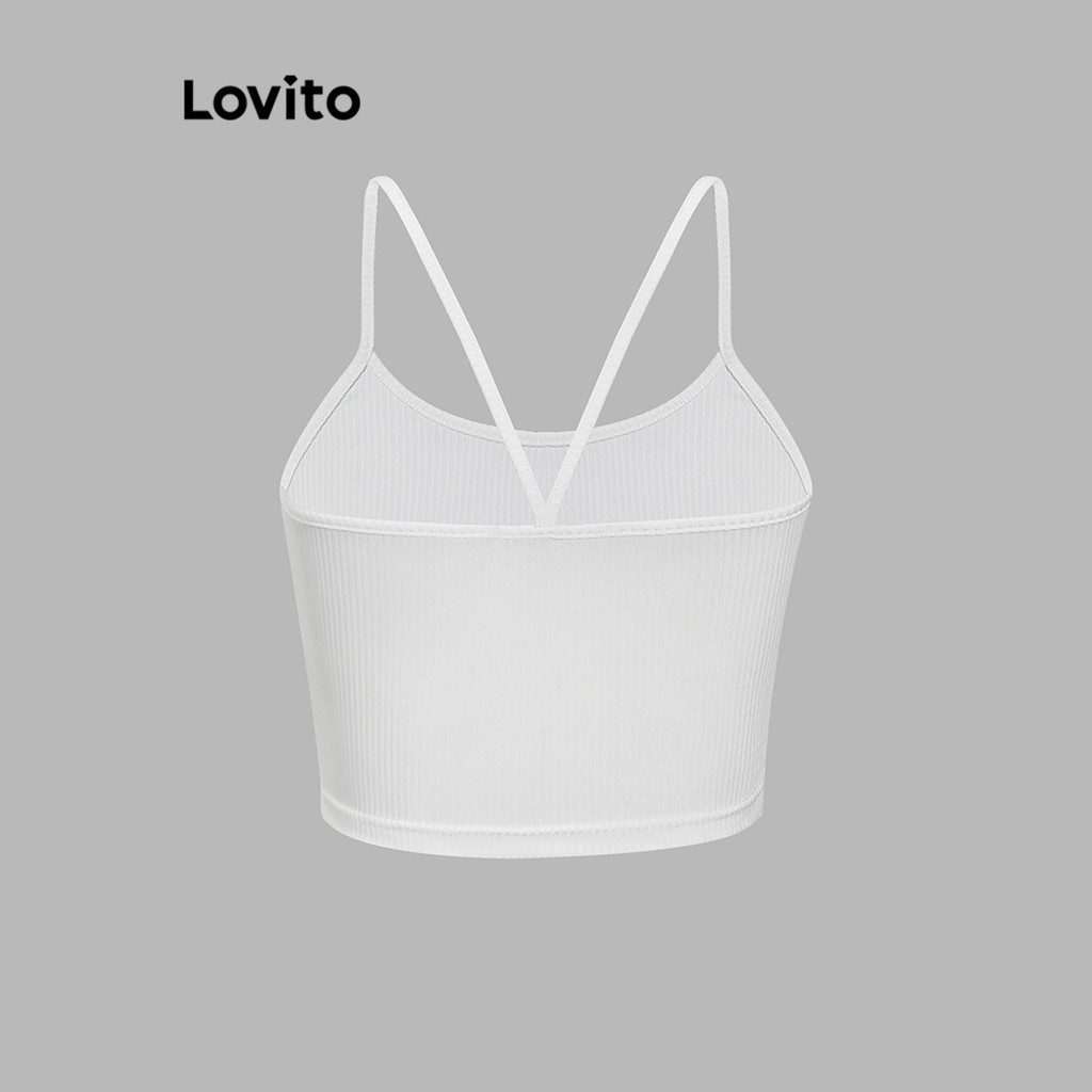 Lovito เสื้อครอปสายเดี่ยว เบสิก สีพื้น สไตล์ลำลอง สำหรับผู้หญิง L77ED058(หลากสี)