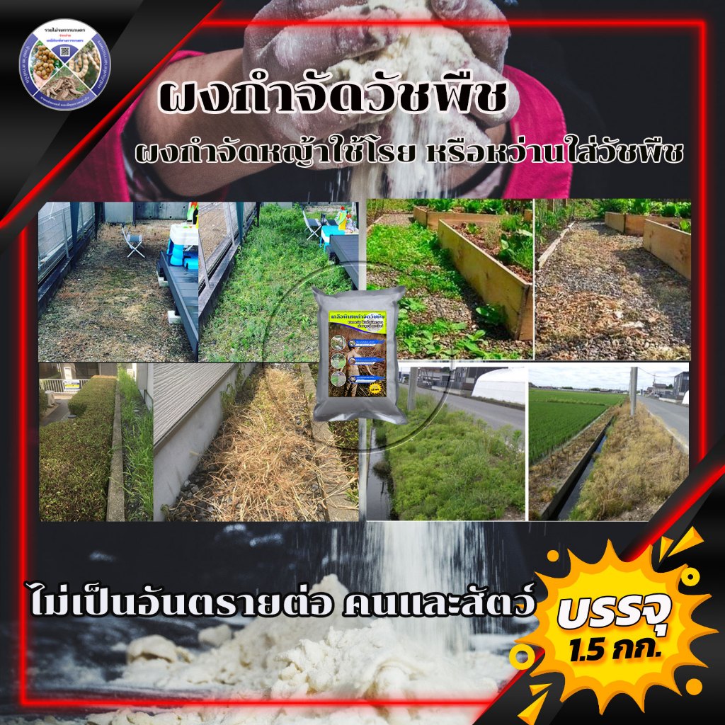 ผลิตภัณฑ์กำจัดศัตรูพืช ยาฆ่าหญ้าชนิดผง ยากำจัดวัชพืช ใช้โรยใส่กอหญ้า สารกำจัดวัชพืชที่ไม่เป็นอันตรายต่อคนและสัตว์เลี้ยง