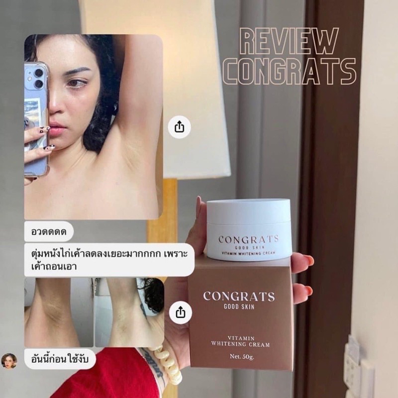 (📍ในไลฟ์ราคา 130 บาท)🤎คอนเกรทครีมทารักแร้ Congrats good skin รักแร้ขาว ลดกลิ่นตัว ลดรอยแตกลาย ของแท้