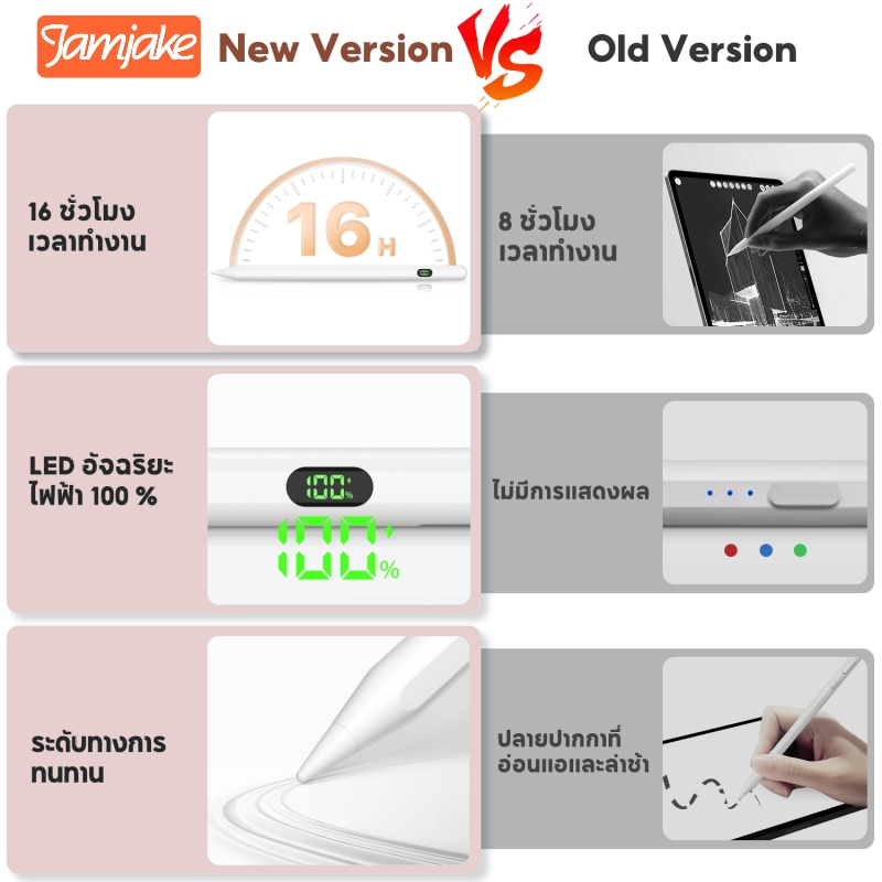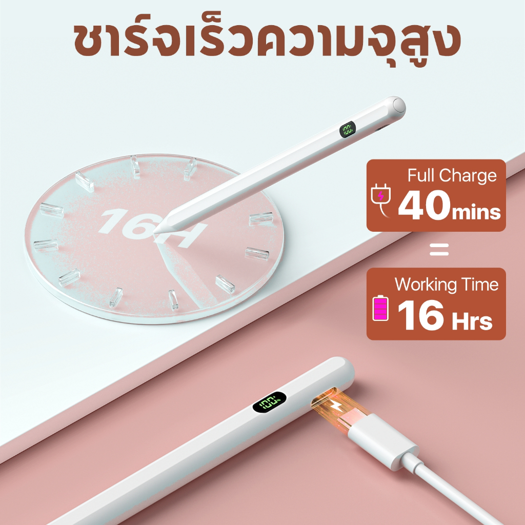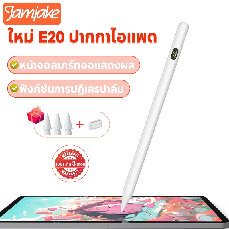 Jamjake E20 ปากกาไอแพด จอแสดงผลอัจฉริยะแบตเตอรี่+สามารถวางมือบนหน้าจอได้ Stylus Pen นำไปใช้กับ iPad Gen10/9/8/7/6 Air5/4/3 Mini6/5 Pro11/12.9 2018-2023