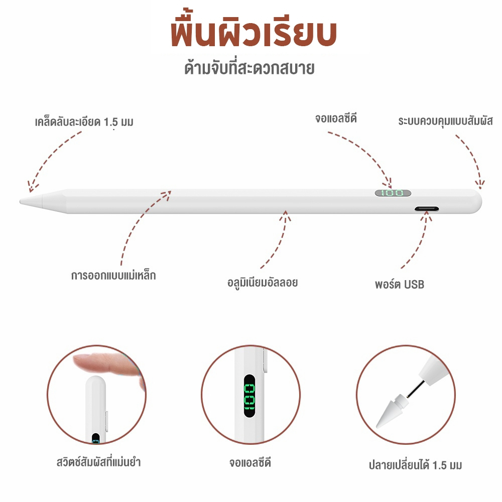 ... ่กับผลการจัดส่ง โดยปกติจะใช้เวลา 1-3 วันทำการ! ! ! 💥อ่านรายละเอียดเงื่อนไขสินค้าให้ครบถ้วนก่อนทำการกดสั่งซื้อนะคะ💥 1.ก่อนสั่งซื้อสินค้า รบกวนคุณลูกค้าตรวจสอบข้อมูล ชื่อ-นามสกุล ที่อยู่ เบอร์โทรให้ครบถ้วนก่อนนะคะ หลีกเลี่ยงการแก้ไขที่ทำให้เกิดความล่าช้าในการสั่งซื้อ 2. กรณีเคลมสินค้า รบกวนลูกค้าส่งสินค้าพร้อมกล่องสินค้าจริงกลับมาให้ทางร้าน กรณีไม่มีกล่องจริงสินค้า ทางร้านขออนุญาติสงวนสิทธิ์ในการเคลมสินค้าทุกกรณีนะคะ ขอบคุณค่ะ 3. หากลูกค้าได้รับสินค้าแล้วขอความกรุณาถ่ายวิดีโอขณะเปิดกล่อง หากไม่มีหลักฐานดังกล่าวทางร้านขออนุญาตไม่รับเคลมสินค้าทุกกรณีนะคะ ขอบพระคุณค่ะ 🏅🏅โมเดลที่เข้ากันได้🏅🏅 iPad Gen10/Gen9/Gen8/Gen7/Gen6 (A1893/A1954/A2197/A2198/A2200/A2270/A2428/2429/A2430/ A2602/A2603/A2604/A2605/A2696) iPad Air3/Air4/Air5 (A2072/A2123/2152/A2453/A2154/A2316/A2324/A2325/A2588/ A2589/A2591) iPad Pro11(Gen1/Gen2/Gen3/Gen4) /Pro12.9(Gen3/Gen4/Gen5/Gen6) iPad Mini6/Mini5 (A2124/A2125/A2126/A2133/A2567/A2568/A2569) ⭕⭕ความสนใจเป็นพิเศษ: ไม่สามารถเข้ากันได้กับ Android ไม่สามารถเข้ากันได้กับรุ่น iPad ที่วางจำหน่ายก่อนปี 2018⭕⭕ ✍✍การตั้งค่าก่อนการใช้งาน✍✍ 1. ระบบ I0S ไม่น้อยกว่า 12.2; 2. จากฟังก์ชั่นกราฟฟิตี> A%pplePencil> ปิดกราฟฟิตี 3. การตั้งค่าและปิดการตั้งค่าของปากกา Apple ดั้งเดิม (หลังจากการตั้งค่าข้างต้นเสร็จสมบูรณ์แล้วสามารถใช้งานได้ตามปกติ) 📑📑คุณสมบัติ📑📑 การปฏิเสธปาล์ม เอียง -ไว ประเภท C การชาร์จอย่างรวดเร็ว ฟังก์ชั่นที่รวดเร็ว ฟังก์ชั่นสิ่งที่แนบมาด้วยแม่เหล็ก Power Number Display Real -Time Preview ปิดเครื่องโดยอัตโนมัติหลังจาก 5 นาทีโดยไม่ต้องเคลื่อนที่ ด้วยความสามารถในการวาดภาพต่อเนื่อง 16 ชั่วโมง 🥉🥉ฟังก์ชั่นการดึงดูดแม่เหล็ก🥉🥉 มันมีฟังก์ชั่นการดูดซับแม่เหล็กและมีประโยชน์ในการดำเนินการทริปและการประชุมเชิงพาณิชย์ ❗ ไม่รองรับการชาร์จไร้สายแม่เหล็ก❗ 🔋🔋การหมุนเวียนพลังงานและแหล่งจ่ายไฟดิจิตอล🔋🔋 กดสวิตช์ด้านบนเพื่อเปิดหน้าจอ DeviceThe หนึ่งครั้งและระดับแบตเตอรี่จะปรากฏขึ้นและแหล่งจ่ายไฟจะถูกใช้สำหรับพลังงานหลังจาก 30 วินาที เปิดสวิตช์อีกครั้งเพื่อตรวจสอบพลังงานของแบตเตอรี่เพื่อปิดอุปกรณ์และการนวดสองครั้ง Switct กดสองครั้งเมื่อหน้าจอเริ่มต้น ⚡⚡พอร์ต C Type C การชาร์จอย่างรวดเร็ว⚡⚡ เวลาชาร์จเต็ม: 40 นาที เวลาทำงาน: 16 ชั่วโมง 💥เปลี่ยนปลายปากกา💥 หยิกปลายและบิดเบา ๆ เพื่อลบการติดตั้ง 🥇🥇คู่มือความปลอดภัย🥇🥇 ความเข้ากันได้: ใช้กับอุปกรณ์หน้าจอสัมผัสที่ระบุเท่านั้น น้ำ: หลีกเลี่ยงน้ำและสภาวะที่ชื้น การรักษา: อย่าดื่มด่ำกับหน้าจอหน้าจอความดันสูงที่อ่อนโยน การกำกับดูแล: เด็กและเด็กที่ลดอุปสรรคควรใช้ภายใต้การดูแลของผู้ใหญ่ ตรวจสอบ: หากความเสี