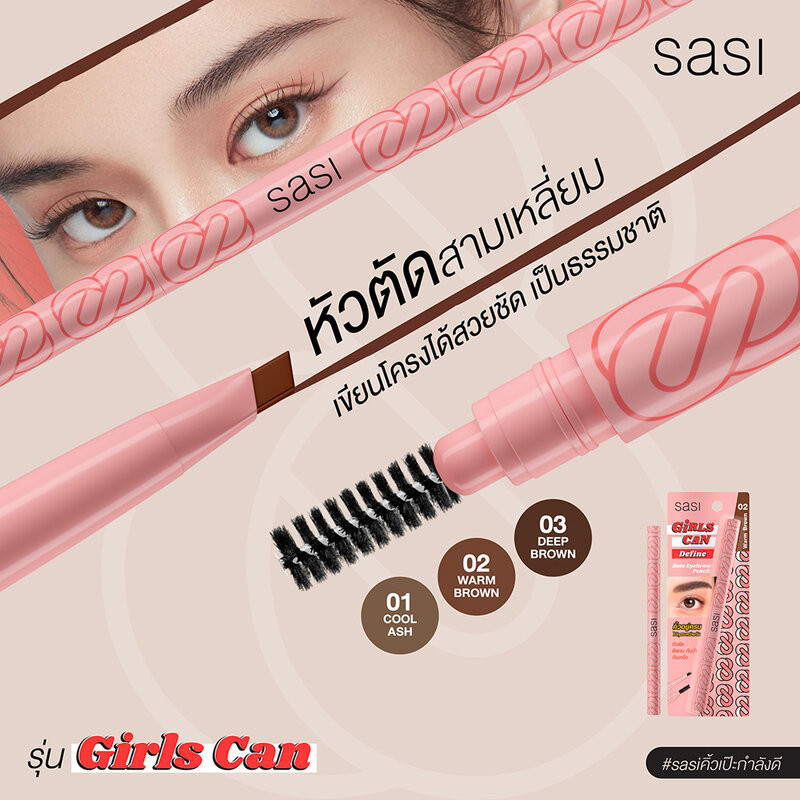 SASI Girls Can Auto Eyebrow Pencil 0.3g ศศิ ดินสอเขียนคิ้วหัวตัดสามเหลี่ยม
