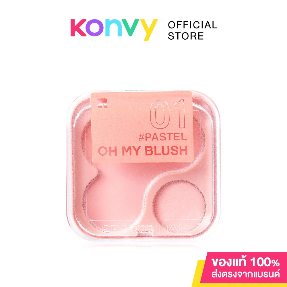Cr.facebook.com/2p.original.official 2P Original Oh My Blush 4.3gบลัชออนไร้ฝุ่น นวัตกรรมใหม่ที่เพิ่มความพิเศษกว่ารุ่นเดิม มี 2 เนื้อสัมผัสในตลับเดียว ทั้งแมทและชิมเมอร์ เนื้อแป้งอัดแน่น เนียนละเอียด ปัดแล้วเรียบเนียนไปกับผิวหน้า ติดทนนาน เพิ่มเฉดสีใหม่ละมุนมากขึ้น สามารถใช้ทาได้ทั้งตาและแก้มโ