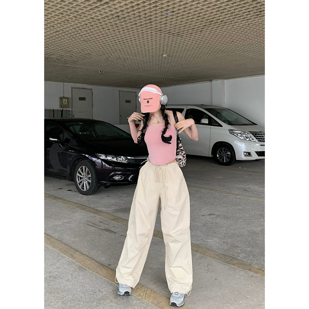 cherryshop พร้อมส่ง🔥กางเกงลำลอง🍓กางเกงคาร์โก้แบบมีเชือกรูดย้อนยุคสไตล์อเมริกัน