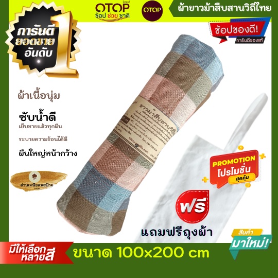ผ้าขาวม้าเนื้อนุ่ม ขนาด100x200cm. ผ้าตัดเสื้อ ผ้าฝ้ายทอมือ