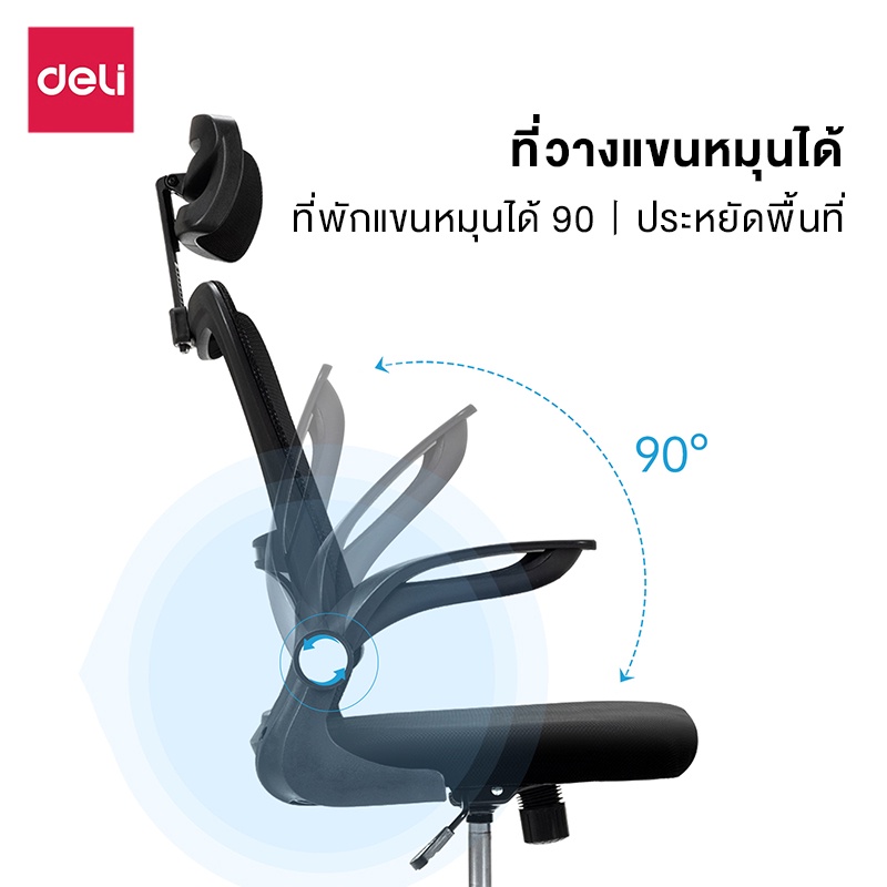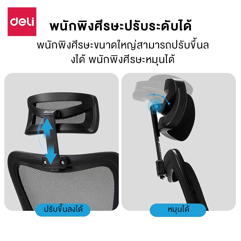 Deli เก้าอี้ทำงาน เก้าอี้สำนักงาน ที่นั่งเพื่อสุขภาพ รวมพนักพิงศีรษะ ปรับสูงต่ำได้ อุปกรณ์สำนักงาน Office Chair