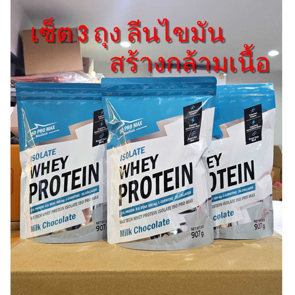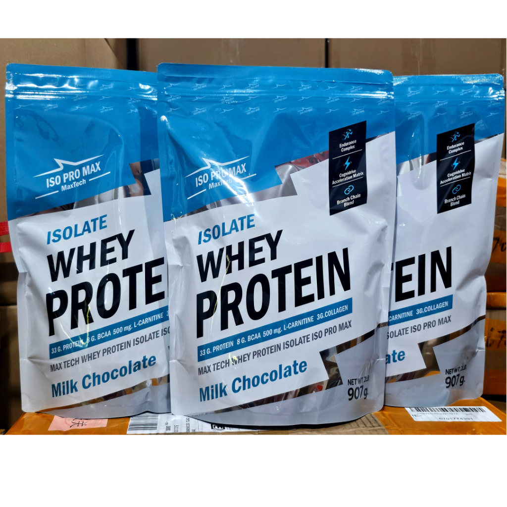 MaxTech ISO PRO MAX Protein Isolate เวย์โปรตีน ไอโซเลท ลดไขมัน เพิ่มกล้ามเนื้อ โปรโมชั่น 3 ถุง เซ็ต3ถุง ถุงละ 2 lb. X3 ISO PRO MAX MaxTech Isolate **รสนมช็อคโกแลต Chocolate รสชาติอร่อยมาก รสช็อกโกแลต โกโก้เข้ม *(ทานง่ายที่สุดในโลกนี้ที่เคยมีมา) ☑️ น้ำหนักสุทธิ ถุงละ 2 ปอนด์ = 907 กร