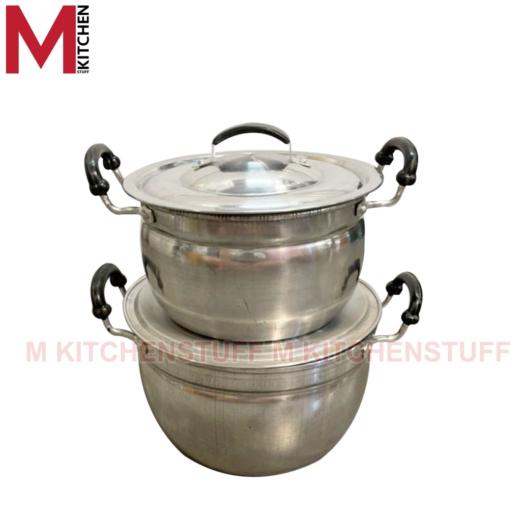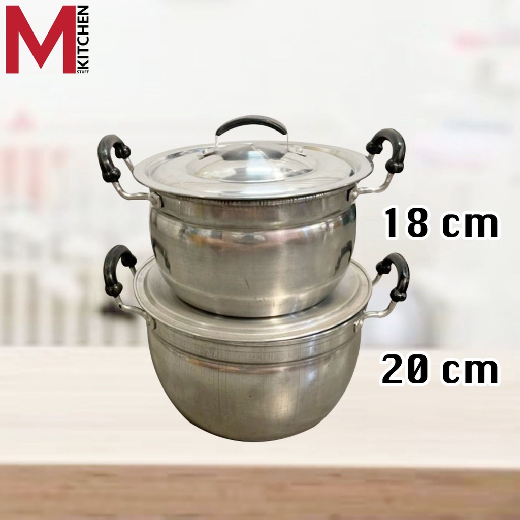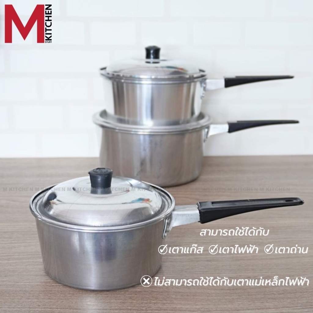 M KITCHEN หม้อ หม้อต้ม หม้อสองหู หม้อโจ๊ก หม้อด้าม พร้อมฝาปิด อลูมิเนียม ตราหงส์ทอง ใช้กับเตาแก๊ส เตาถ่าน (C5)