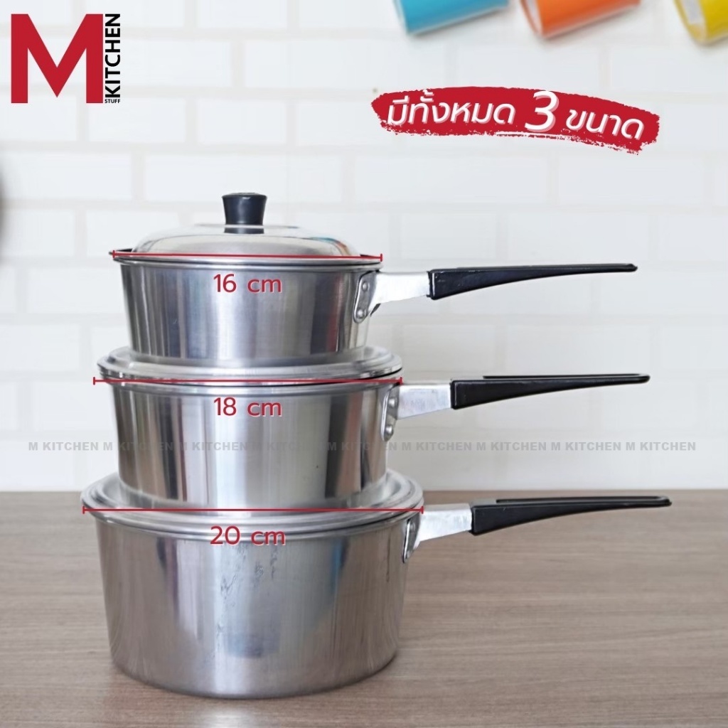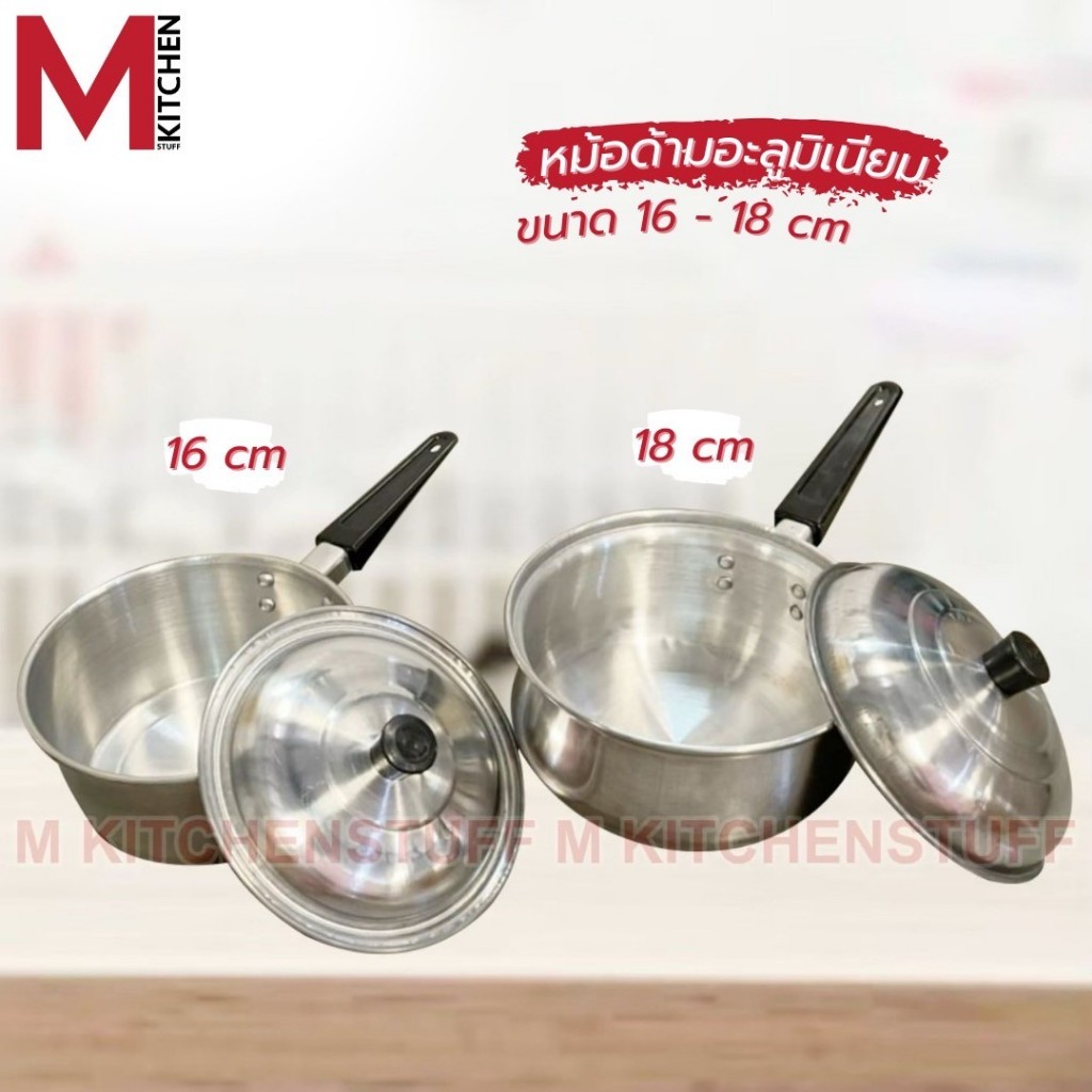 M KITCHEN หม้อ หม้อต้ม หม้อสองหู หม้อโจ๊ก หม้อด้าม พร้อมฝาปิด อลูมิเนียม ตราหงส์ทอง สามารถใช้กับเตาแก๊ส เตาถ่าน ตัวเลือก 1.หม้อด้าม ขนาด 16 ซม 2.หม้อด้าม ขนาด 18 ซม 3.หม้อสองหู ขนาด 18 ซม 4.หม้อด้าม ขนาด 20 ซม สินค้า : ภาชนะ/อุปกรณ์ เครื่องครัวอลุมิเนียม วิธีใช้ : ใช้ประกอบอาหาร สามา
