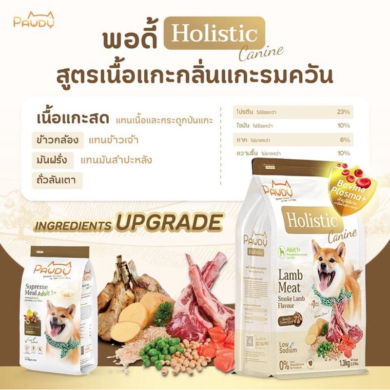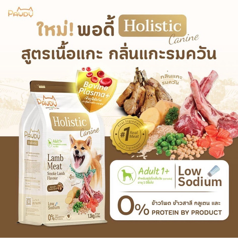 Pawdy อาหารสุนัขเกรดพรีเมียม Holistic สำหรับสุนัขโต อายุ 1 ปีขึ้นไป สูตรเนื้อแกะรมควัน ขนาด 1.3 กก.