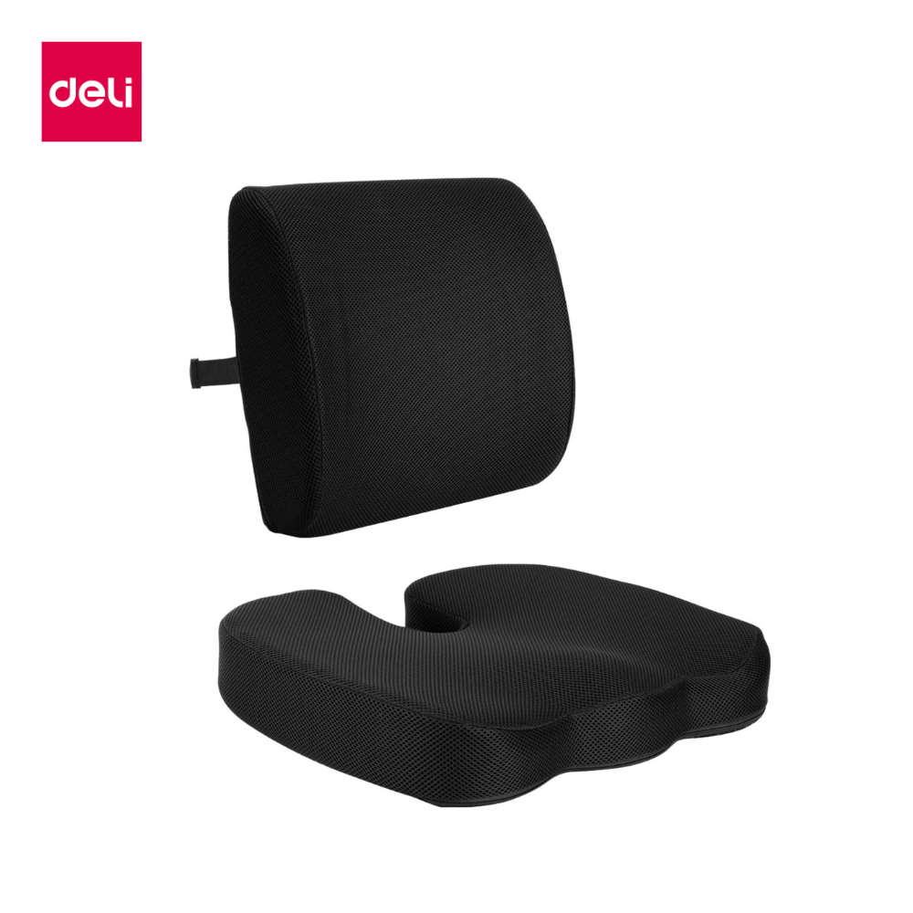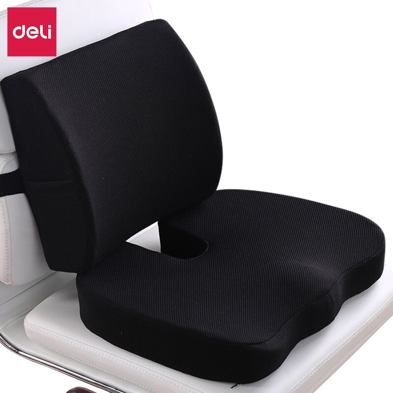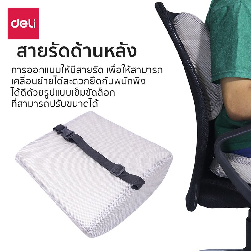 Deli เบาะรองหลัง (ใช้ได้กับเก้าอี้หลากหลาย) เบาะรองนั่ง เบาะรองเก้าอี้ ลดอาการปวดเมื่อย เมมโมรี่โฟมแท้ 100% Cushion