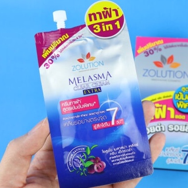 (1 ซอง) Zolution โซลูชั่น เมลาสม่า เคลียร์ ครีม เอ็กซ์ตร้า (สูตรเข้มข้นพอเศษ) ทาฝ้าแดด รอยดำ รอยสิว