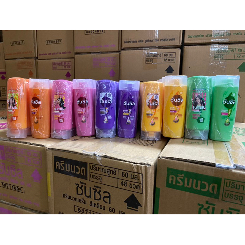 ... ันซิล สีเขียว 60 มล. สูตรผมยาวสวยสุขภาพดี ร่วมคิดค้นโดย ดร. ฟรานเชสกา ฟัสโก สูตรเฉพาะจากซันซิลพร้อมไบโอติน บำรุงล้ำลึกตั้งแต่โคนจรดปลาย เพื่อเส้นผมที่แข็งแรง สุขภาพดี ดูหนานุ่มขึ้น 2.ซันซิล สีม่วง 60 มล. สูตรผมตรงสวยสมบูรณ์แบบ ร่วมคิดค้นโดย ยูโกะ ยามาชิตะ สูตรเฉพาะจาก ซันซิลสีม่วง พร้อมซิลค์โปรตีน ช่วยล็อคเส้นผมให้ตรงสวยตลอดเส้น* ดูมีชีวิตชีวาไม่พันกัน เพื่อผมตรงสลวยเปล่งประกาย 3.ซันซิล สีเหลือง 60 มล. สูตรผมนุ่มลื่นเรียบสวย ร่วมคิดค้นโดย โทมัส ทอร์ สูตรเฉพาะจากซันซิลพร้อมเทคโนโลยีมอยส์เจอร์-ล็อค ผสานน้ำมันธรรมชาติ 5 ชนิด ช่วยให้ผมรู้สึกชุ่มชื้น นุ่มลื่นขึ้นได้ดั่งใจ 4.ซันซิล สีส้ม 60 มล. สูตรบำรุงผมเสียในทันที ร่วมคิดค้นโดย โทมัส ทอร์ สูตรเฉพาะจากซันซิลพร้อมแมกซ์ แคลเซียมและเคราติน ช่วยขจัดสิ่งสกปรกและฟื้นบำรุงผมแห้งเสีย ให้คุณพร้อมรับประสบการณ์ใหม่ 5.ซันซิล สีชมพู 60 มล. สูตรผมมีน้ำหนัก จัดทรงง่าย ร่วมคิดค้นโดย ยูโกะ ยามาชิตะ สูตรเฉพาะจาก ซันซิล พร้อมน้ำมันธรรมชาติ 5 ชนิด และเทคโนโลยีเฟล็กซี่ชิลด์ ช่วยบำรุงผมให้มีน้ำหนัก จัดทรงง่าย ดูมีชีวิตชีวา พลิ้วสวยเข้ากับทุกการเคลื่อนไหว #Sunsilk #ซันซิล #ซันซิล60มล