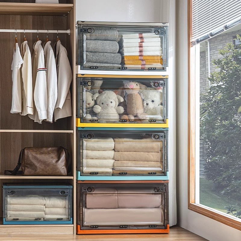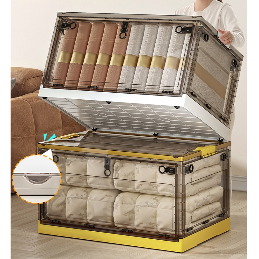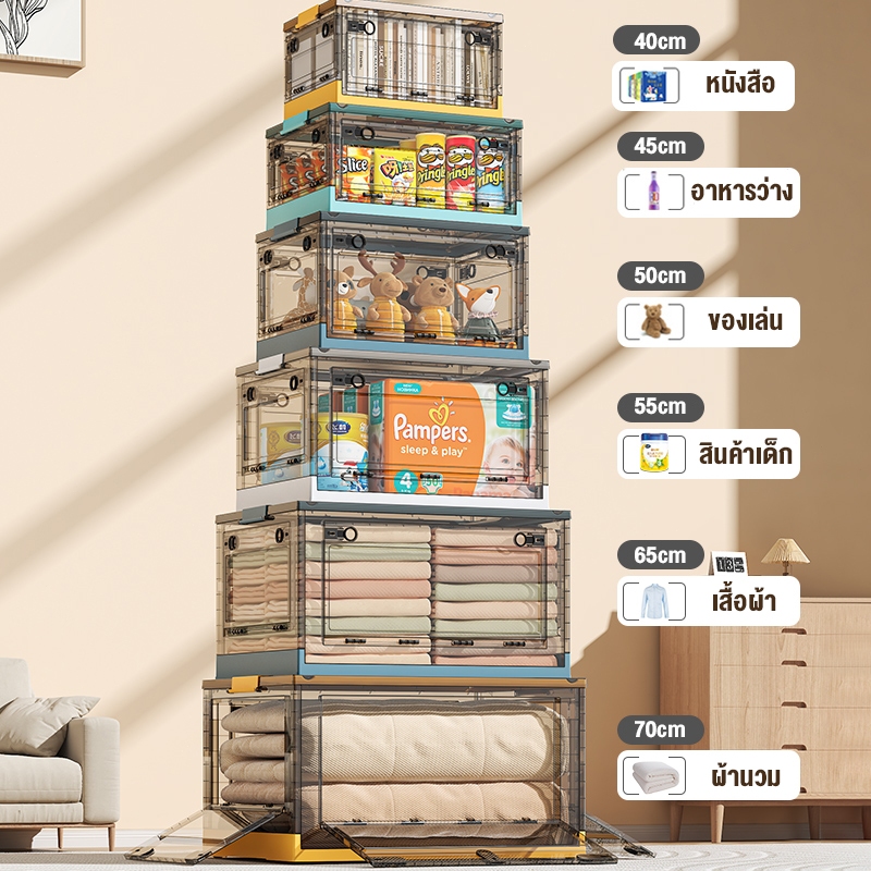 MULI กล่องเก็บของ 120L กล่องใส่เสื้อผ้าพับได้ เปิดได้4ด้าน ตู้เก็บของ พลาสติกใส มีซ้อนได้ อเนกประสงค์