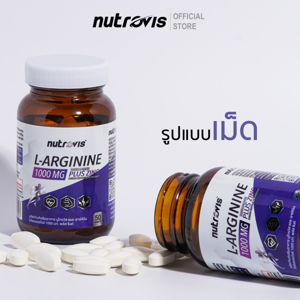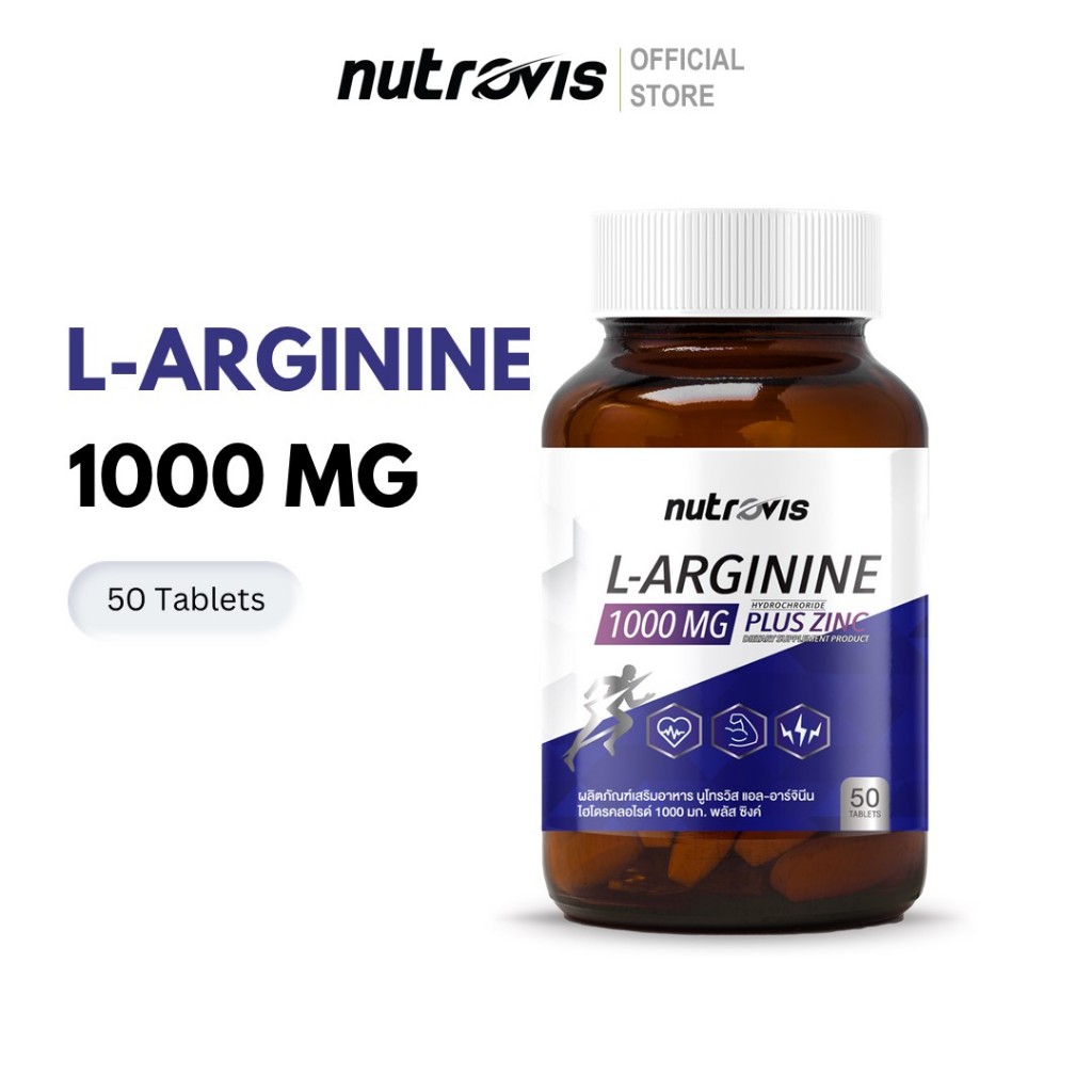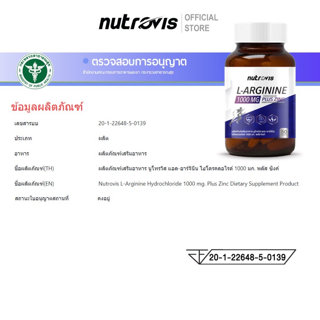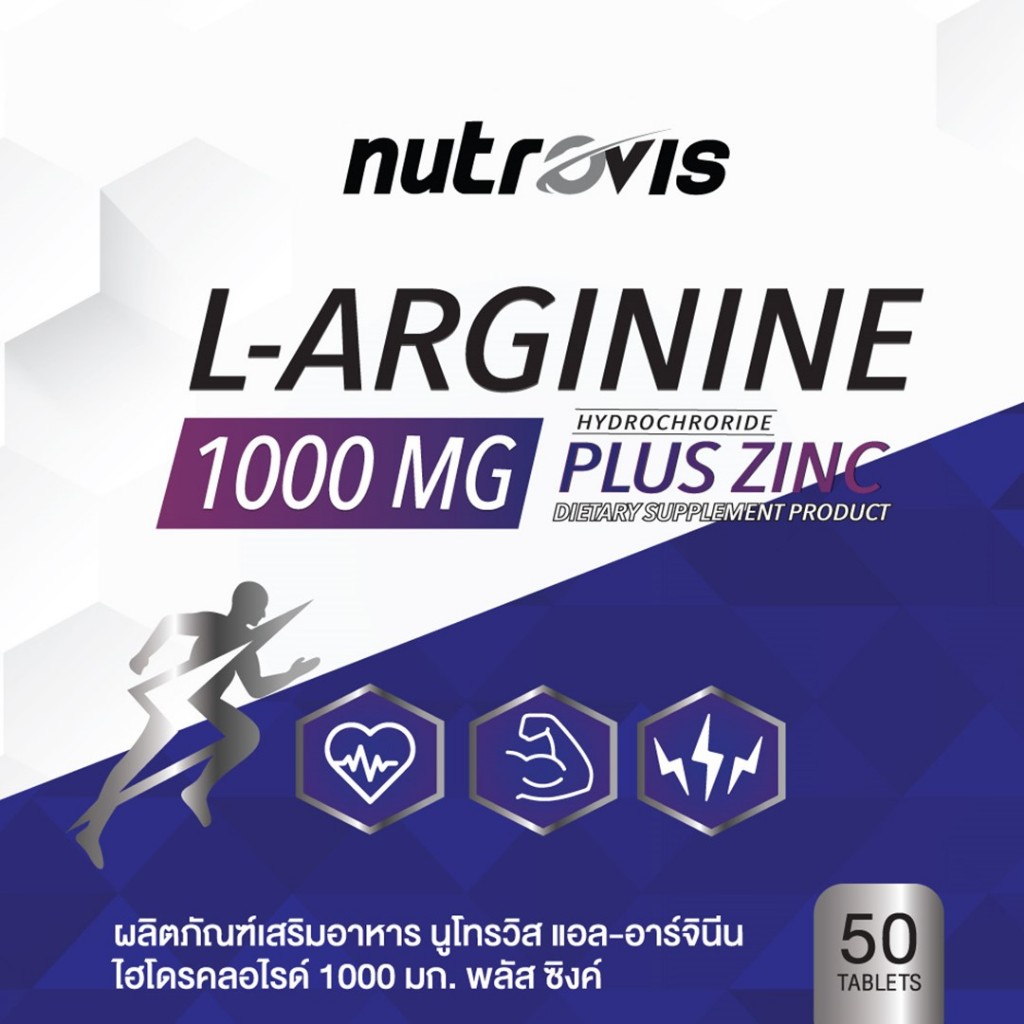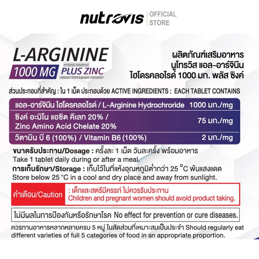 [50 เม็ด] Nutrovis L-Arginine 1000 mg plus Zinc นูโทรวิส แอล-อาร์จินีน 1000 มก. พลัสซิงค์ (SKI IM)
