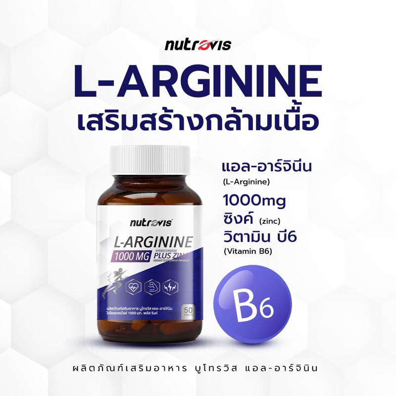 Nutrovis L-Arginine 1000 mg plus Zinc นูโทรวิส แอล อาร์จินีน 1000 มก. พลัสซิงค์ (50 Tablets) L-Arginine, Zinc และ Vitamin B6 มีความสำคัญอย่างไร ✅ L-Arginine เป็นกรดอะมิโนจำเป็น (Essential Amino Acid) ที่ร่างกายต้องการ มีผลต่อการสร้างโกรทฮอร์โมน (Growth Hormone) ตามปกติ เพื่อการเจริญเติบโต ใช