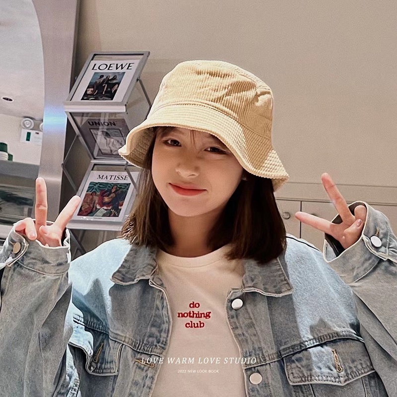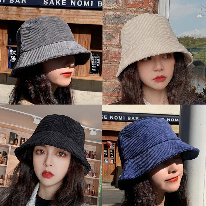 Ins หมวกบักเก็ต หมวกวินเทจ ลูกฟูก สีพื้น