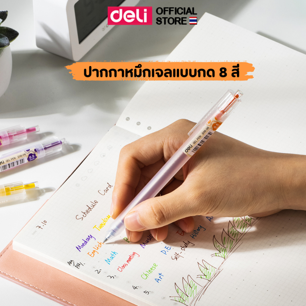 ปากกาเจล Deli ปากกาหมึกสี เขียนลื่น น้ำหมึกเป็นเจล มีให้เลือก 12 สี หมึกไหลสม่ำเสมอ ขนาด 0.5mm 1 แท่ง