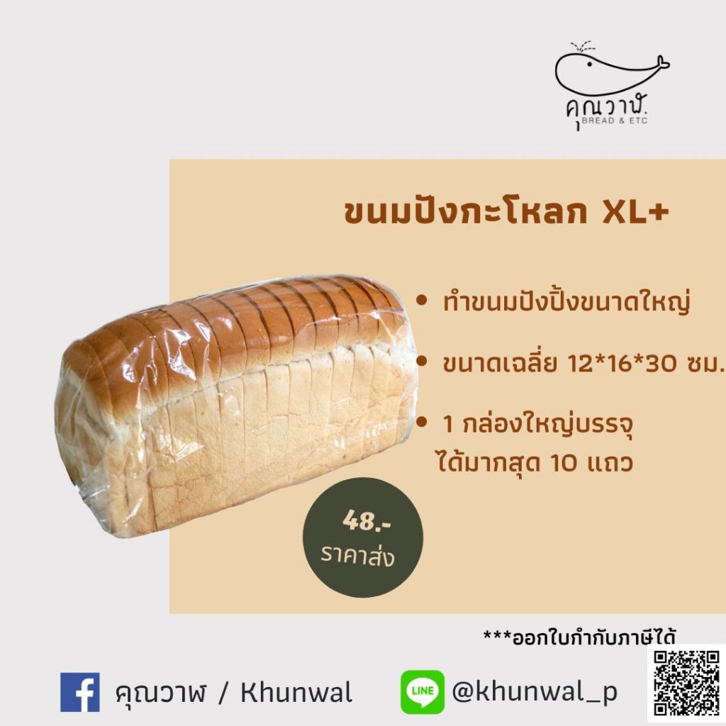 ❤️🍞 ขนมปังโอเพ่นท๊อป หรือกะโหลก ขนาด XL สำหรับปิ้งย่าง 🍞❤️ 🍞🔔 📢 รายละเอียดของขนมปัง🍞🔔 📢 1. ขนาดโดยประมาณ 12*16*30 ซม. กล่องขนาดใหญ่สุด ใส่ได้เพียง 10 แถวเท่านั้นนะคะ 2. ขนาดสไลด์ มี 4 แบบ แบบไม่หั่น สำหรับลูกค้านำไปหั่นเองตามขนาดที่ต้องการ แบบหั่นหนา 20 มิล // 1 แพค จะได้ประมาณ 14 แผ่น
