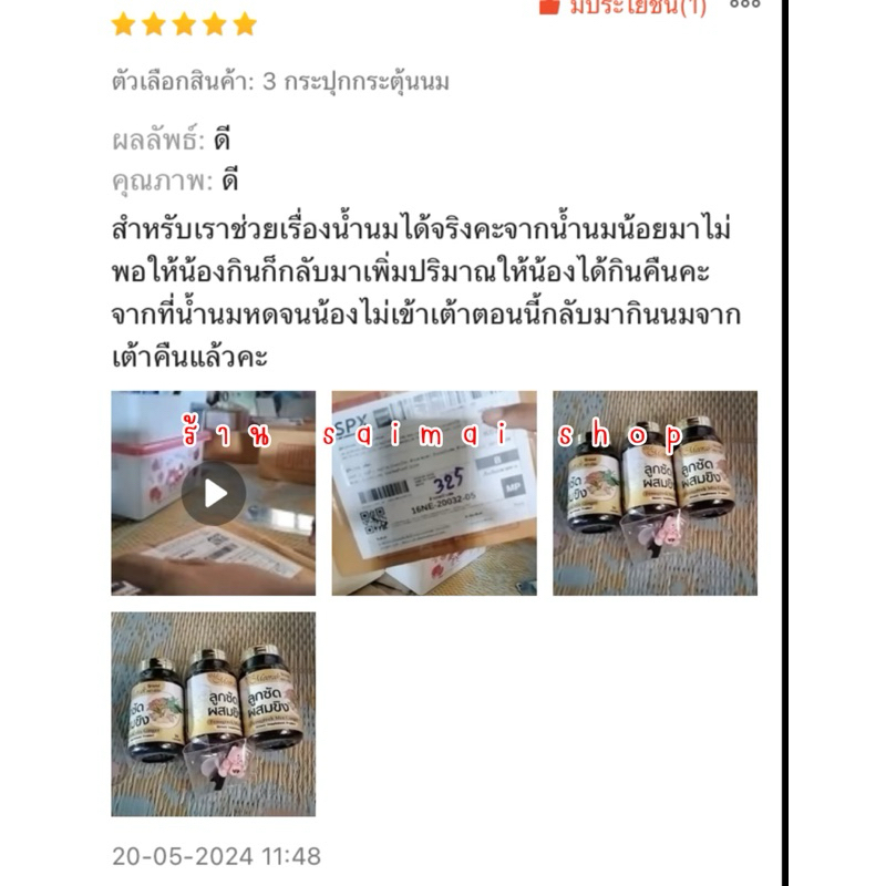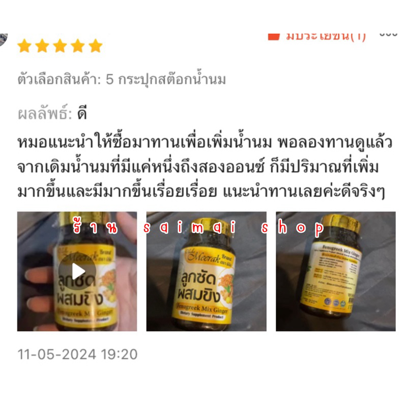 ... ล่องเพื่อยืนยัน ) แอดมิทตอบแชท 24 ชั่วโมง ปรึกษาฟรี ทักหาได้ตลอดนะคะ #ลูกซัดเป็นพืชตระกูลถั่ว ผู้แพ้ถั่วหรือเป็น G6DP ไม่แนะนำ สามารถเพิ่มน้ำนมได้ 📌สรรพคุณ📌 - กู้น้ำนม กระตุ้นน้ำนม ทำสต๊อคนมแม่ - อาการท้องอืดของแม่และบุตร - ไล่ไขมันหลังคลอด - ให้มดลูกเข้าอู่เร็ว - ผิวพรรณผ่องใส ไม่โทรม - บำรุงน้ำนมให้เข้มข้นขึ้น (น้ำนมข้นสารอาหารเยอะ) - สามารถกู้น้ำนมสำหรับแม่ที่ละทิ้งการปั๊มนมไปนานได้ - ทานง่ายเป็นแคปซูล สะดวก วิธีการทาน ทานหลังอาหารเช้า เที่ยง เย็น 1-2 แคปซูล /มื้อได้เลยค่ะ . คุณแม่ทั่วประเทศได้พิสูจน์แล้วค่ะว่าสูตรเร่งน้ำนมนี้สามารถกู้น้ำนม-ทำสต๊อกนมแม่ได้จริง แถมน้ำนมยังเข้มข้นขึ้นอีกด้วยค่ะ . ผลิตภัณฑ์นี้ได้ผ่านอยแล้ว คุณแม่ไว้วางใจได้เลยค่ะ ปลอดภัย ไม่มีสารตกค้างใน ร่างกายของคุณแม่และน้องแน่นอนจ้า ผลิตจากสมุนไพรธรรมชาติ % (เป็นผลิตภัณฑ์สำหรับแม่ให้นมโดยตรง)