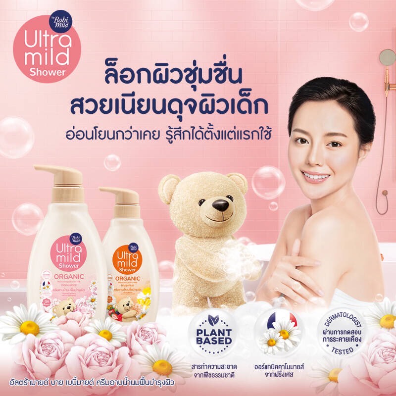 ครีมอาบน้ำนมฟื้นบำรุงผิว (ออแกนิค) อัลตร้ามายด์ เบบี้มายด์ (ถุงเติม 360 มล.)