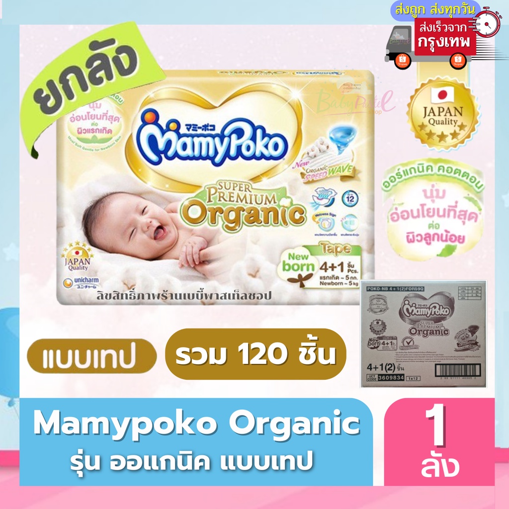 Mamypoko Organic ออแกนิค SuperPremium Newborn แรกเกิด NB( รุ่นเทป ) ยกลัง 120 ชิ้น* มีครึ่งลังด้วยนะคะ(ค่าส่งถูกจาก กทม)