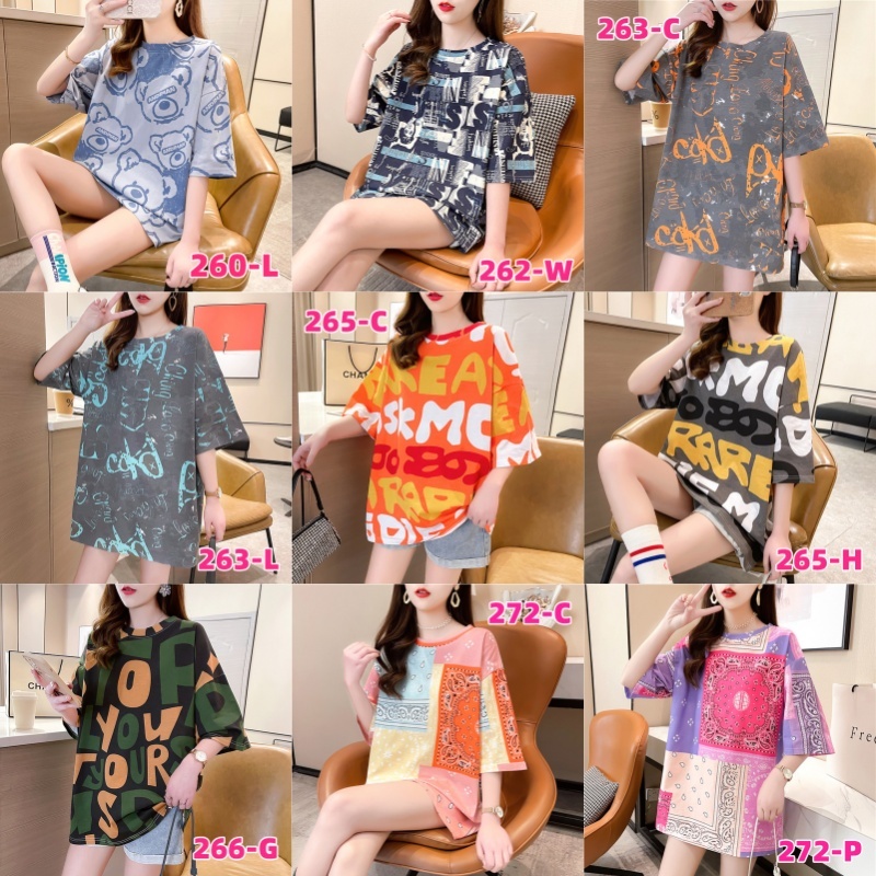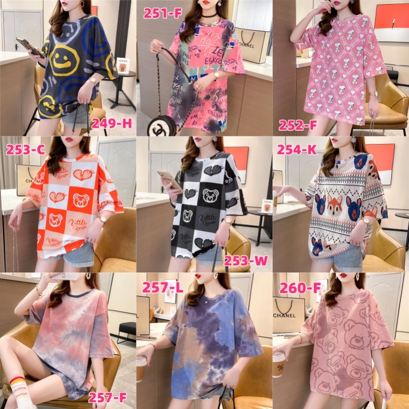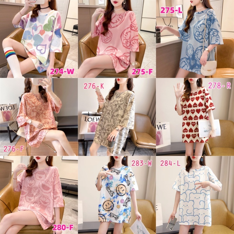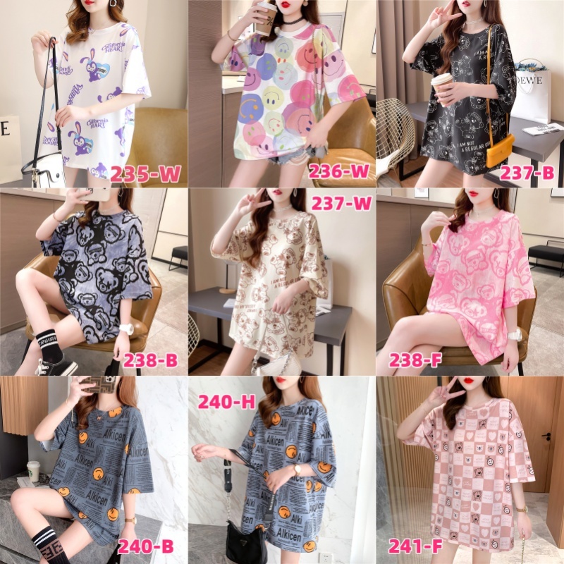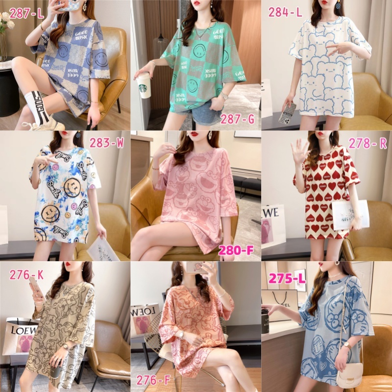 เสื้อยืดแขนสั้นแฟชั่นผู้หญิงฤดูร้อนสไตล์ใหม่พิมพ์ขนาดใหญ่หลวมฤดูร้อนเกาหลีผ้าฝ้ายคอกลมยาวปานกลางเสื้อยืดการ์ตูนน่ารัก