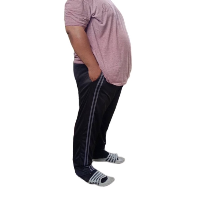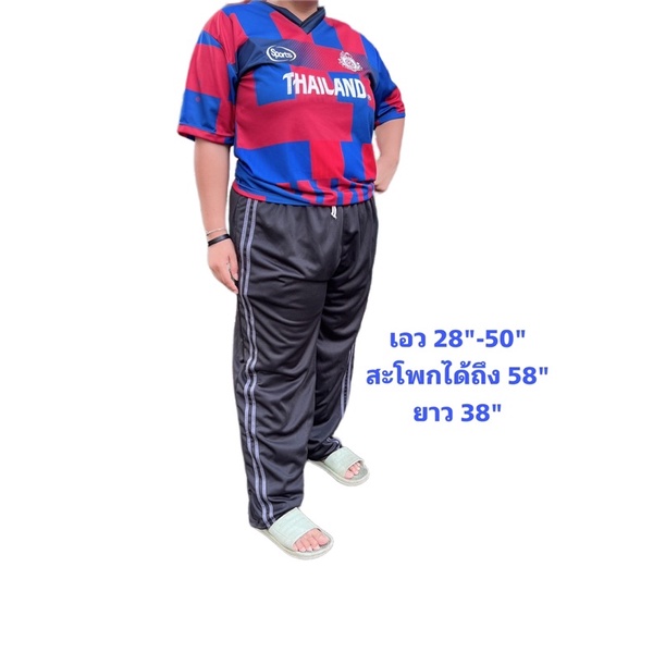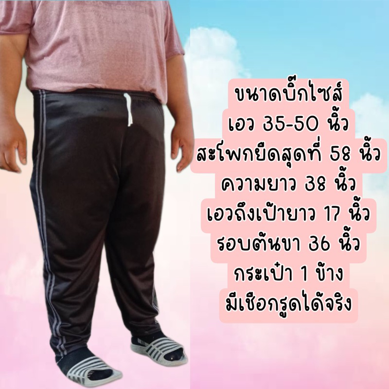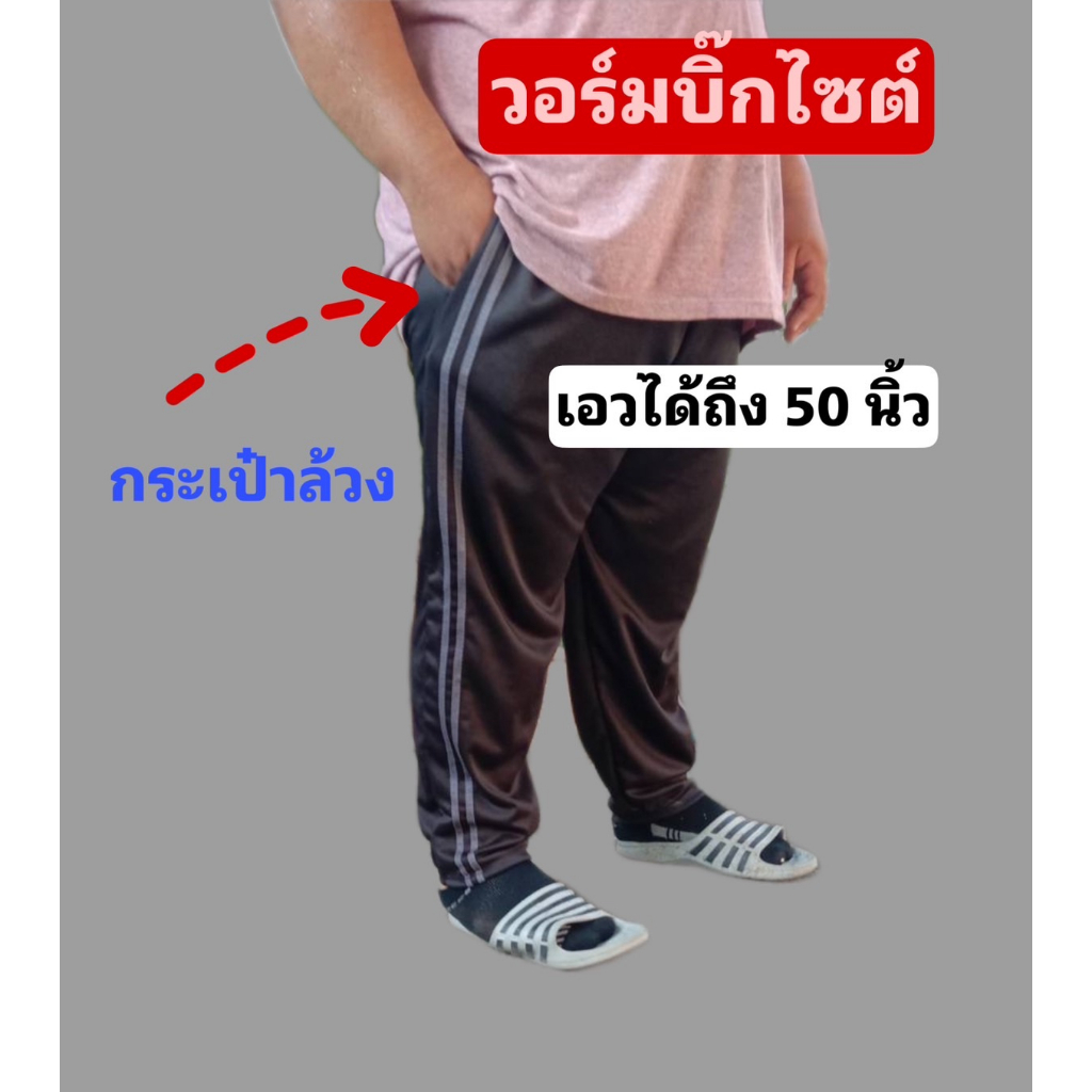 กางเกงวอร์มบิ๊กไซต์ขาปล่อยแถบคู่ (พื้นดำ) เหมาะกับผู้ที่มีน้ำหนัก 80-100 กิโล+ สามารถใส่ได้ทั้งชายและหญิง