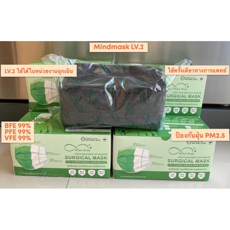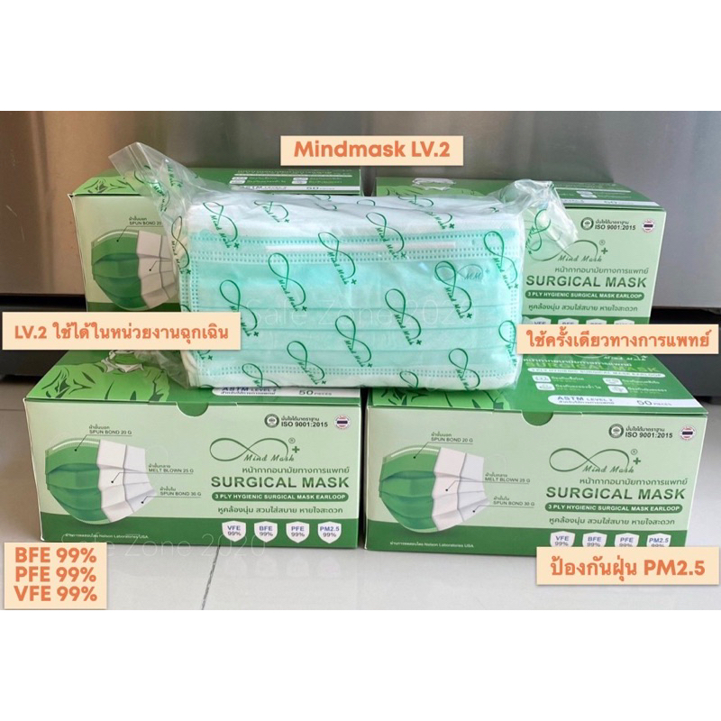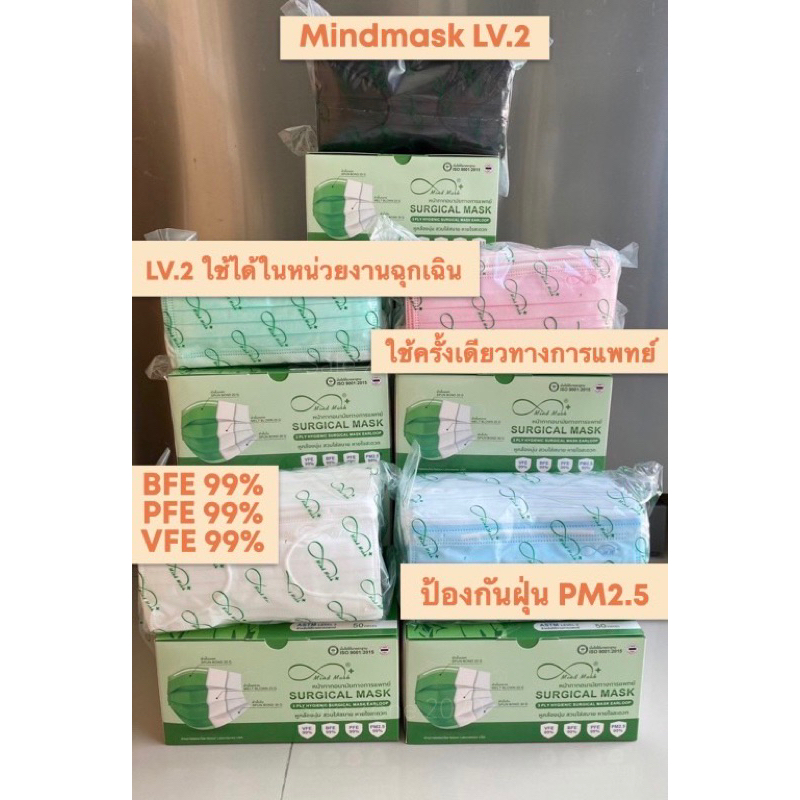 ‼️พร้อมส่งครบสี ‼️ Mindmask หน้ากากอนามัยทางการแพทย์ กรอง 3 ชั้น ASTM Level 2 ผลิตในไทย🔺มี 5 สี🔺 ลอตล่าสุด 50 ชิ้น/กล่อง