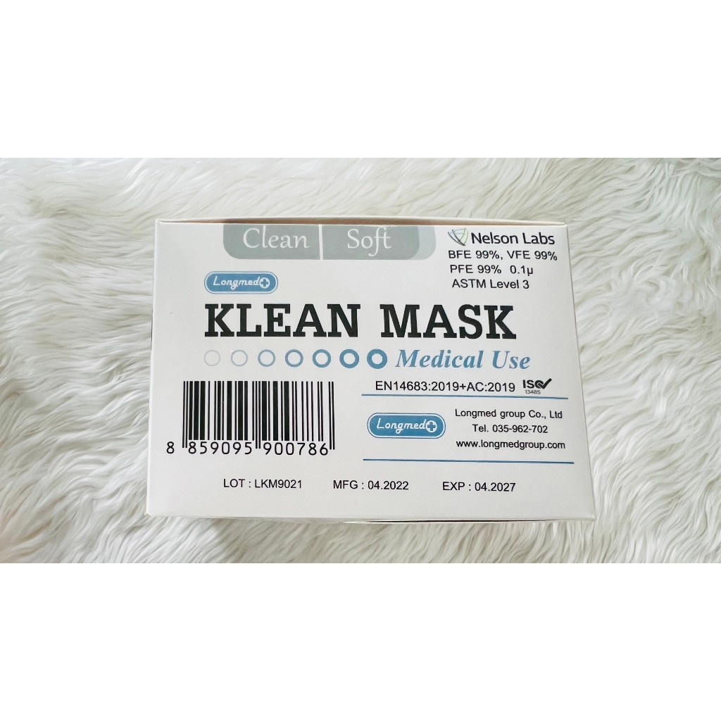 หน้ากากอนามัยทางการแพทย์ 50 ชิ้น/กล่อง ยี่ห้อ LONGMED Klean Mask ​ หน้ากากอนามัย 3 ชั้น มีปั๊ม Longmed ทุกแผ่น มีประสิทธิภาพในการกรองป้องกันเชื้อโรคได้มากกว่า 97% สินค้าเป็นของแท้ทุกกล่อง สั่งตรงจากโรงงาน